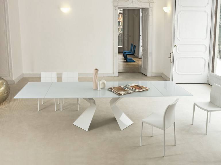 Стол Bonaldo Prora представляет собой модель, чьи формы похожи на нос корабля. Ножки стола выполнены из металла. Столешница производится в различных цветовых вариантах и может быть сделана из дерева или стекла. Стол доступен в двух модификациях: с регулируемой и нерегулируемой по длине столешницей и производится в нескольких размерах. Более подробную информацию можно уточнить у менеджера.