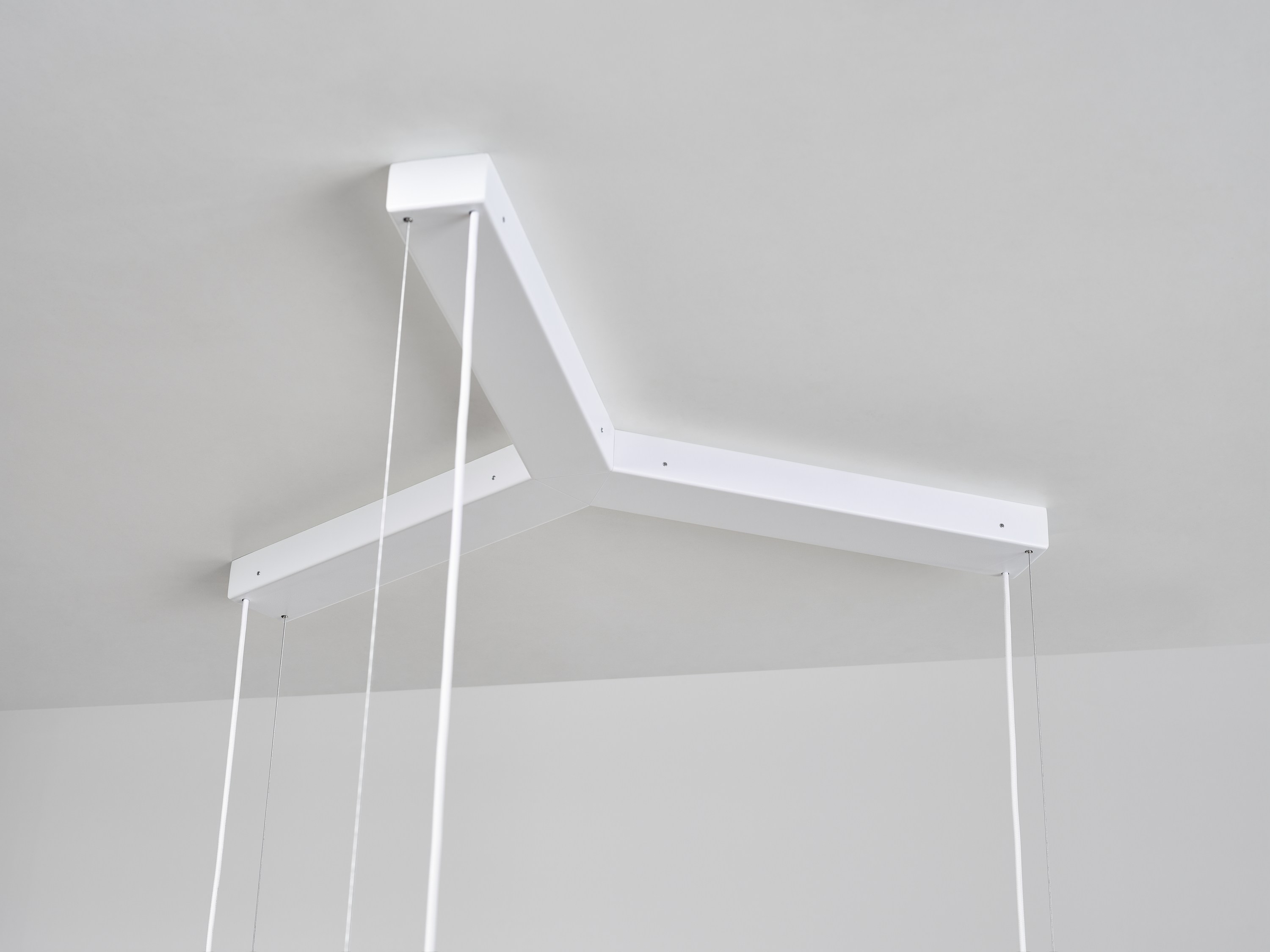 Puro Contour Triangle доступен в двух цветовых вариантах стекла: тёмно-сером и опаловом белом. Длина подвеса составляет 200 см. Это позволяет гибко адаптировать расположение светильника под различные дизайнерские решения и особенности помещения.