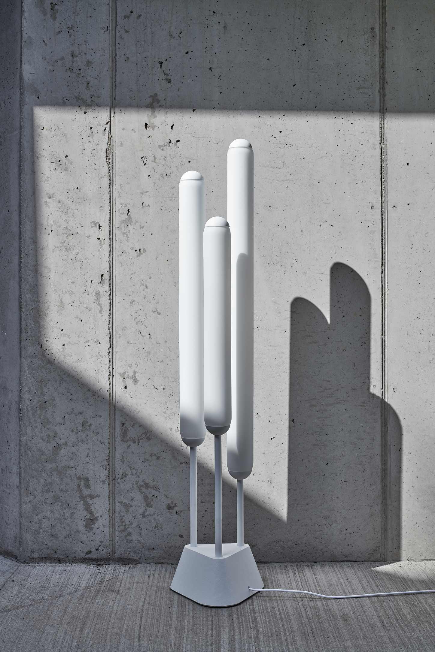 Конструктивно светильник включает прочное металлическое основание. Оно обеспечивает устойчивость. Также в светильнике есть светодиодные источники света и стеклянные трубки из опалового или серого стекла. Модель оснащена 3‑контактным сетевым шнуром длиной 200 см.