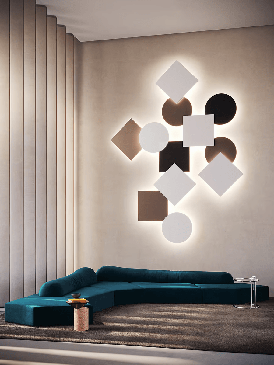 Крупные геометрические фигуры с простыми строгими формами, которые почти полностью сливаются с архитектурой интерьера, когда они выключены. Но стоит их включить, как вы увидите неожиданную и гармоничную игру света и тени. Светильники Puzzle Mega позволяют декорировать светом стены и потолки.