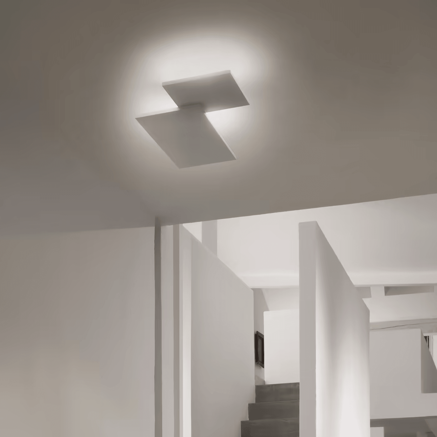 Простые металлические формы, такие как квадраты и прямоугольники, словно растворяются в потолке или стене. Светильники Puzzle square превращают освещение в изысканный декоративный элемент, создавая мягкие геометрические узоры в жилых интерьерах.