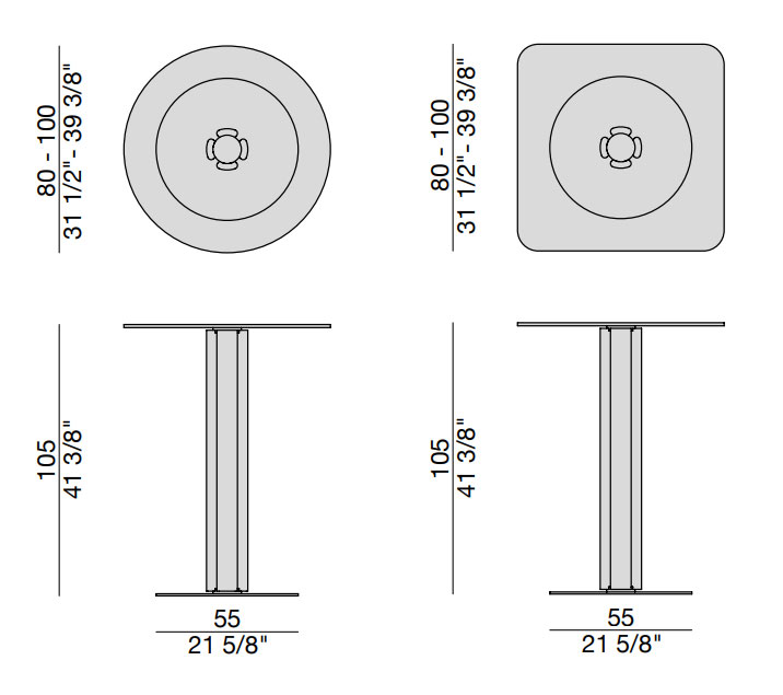 Quadrifoglio bistrot h105 Tondo и Quadrifoglio bistrot h105 Quadrato – барные столы, воплощающие гармонию элегантности и инновационного дизайна. Их столешницы, выполненные из прозрачного стекла толщиной 15 мм, могут быть круглыми или квадратными. Такое стекло отличается долговечностью и устойчивостью к механическим повреждениям, сохраняя прозрачность и блеск на протяжении многих лет.