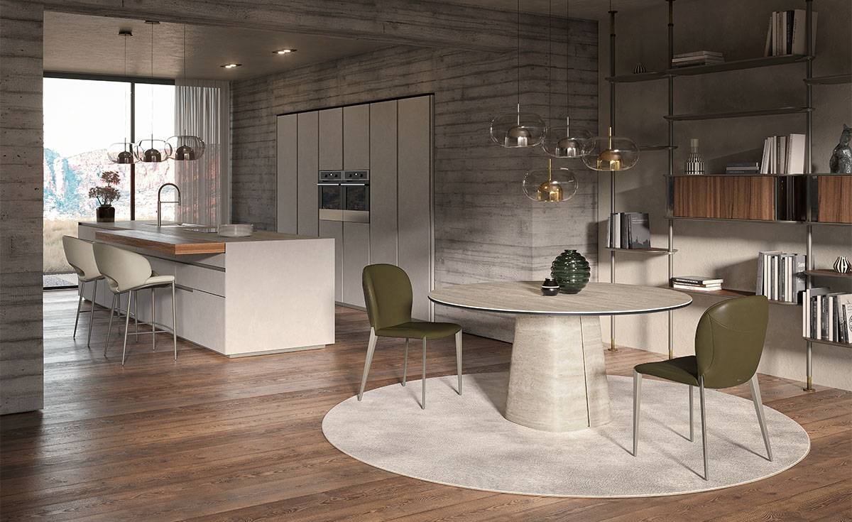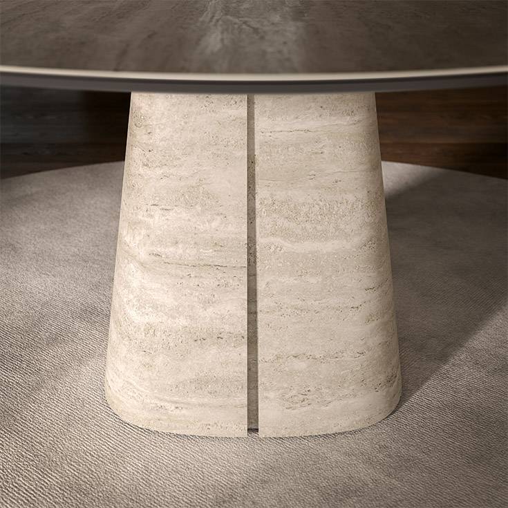 Инновационная серия столов, в которой впервые применена технология формовки гнутых керамических панелей для создания оснований сложной геометрии. Две симметричные керамические чаши образуют скульптурный центральный постамент, дополненный декоративной вертикальной нишей с керамической отделкой. Rado Keramik Round — круглая модель с цельнокерамической столешницей и основанием.