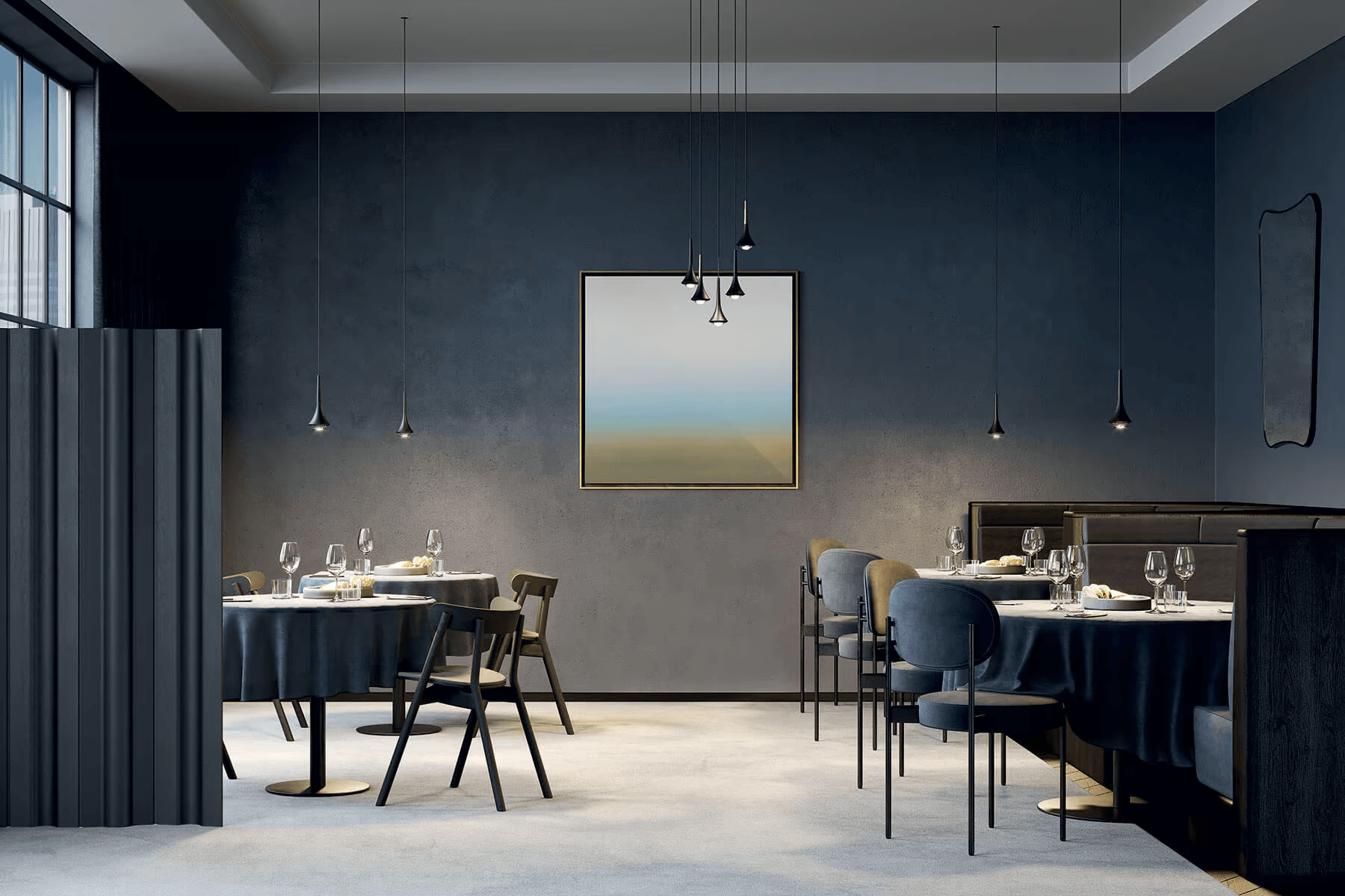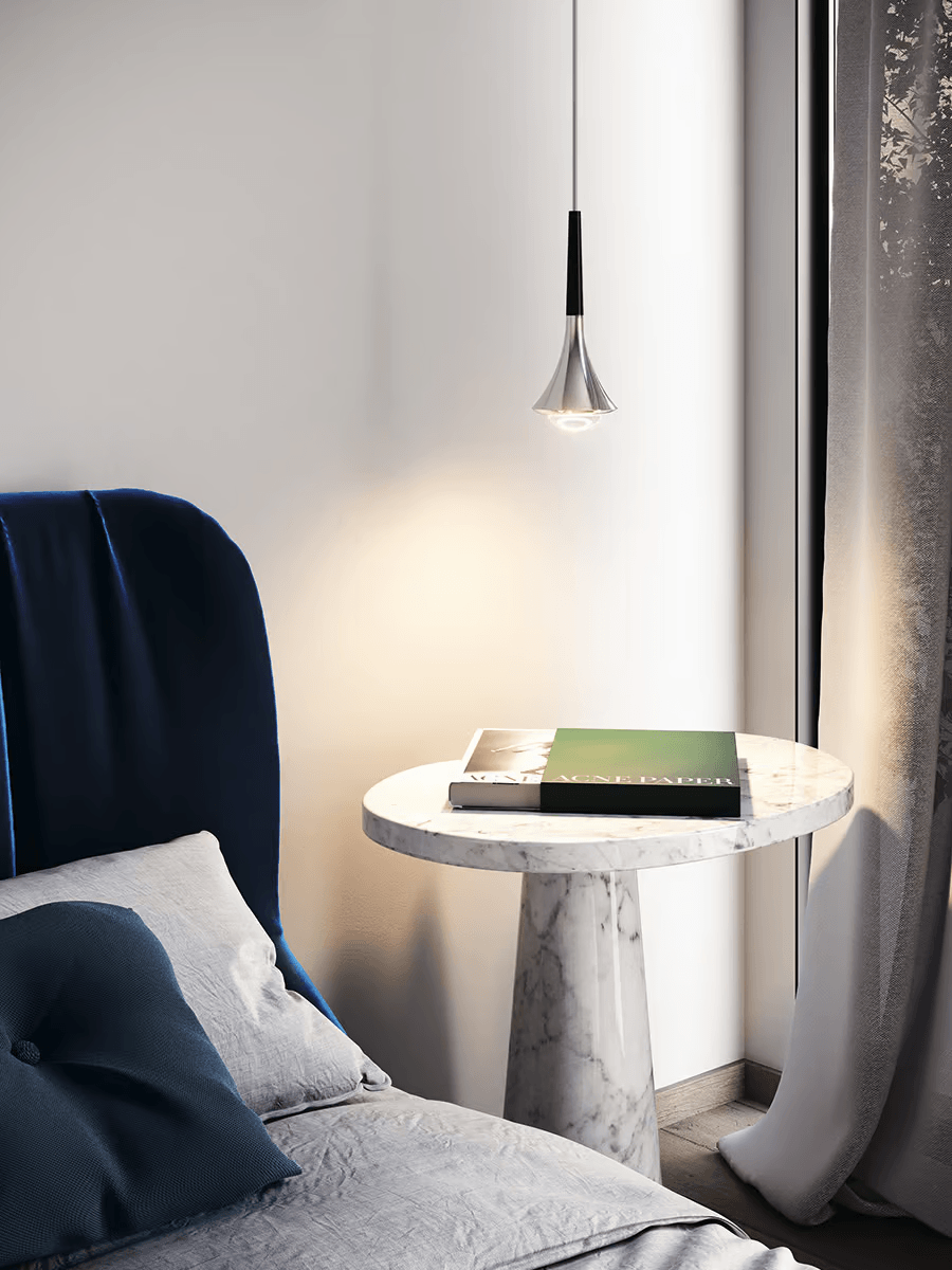 Отдельный светильник идеально подходит для интерьеров, оформленных в минималистическом стиле. В таких интерьерах он создаёт чёткую и эффектную световую точку, например, на тумбочке.