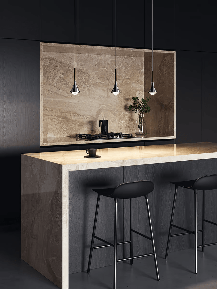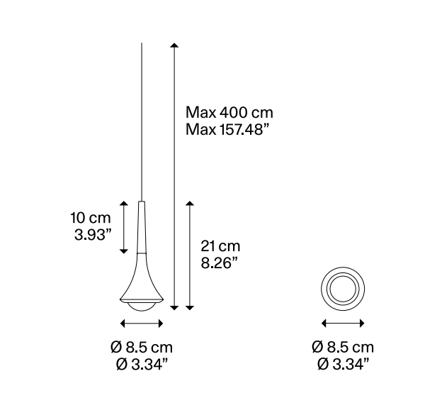 Светильник Rain подвешивается на тонкий питающий кабель длиной до 4 метров. Диффузор, выпуклая стеклянная линза, содержит модуль LED мощностью 7 Вт, который может обеспечивать более теплый — 2700 K — или более холодный свет -3000 K. Линза проецирует прямой свет без слепящих бликов с индексом цветопередачи (CRI) 90, который передает естественный цвет предметов, не искажая его. Изысканный светильник диаметром лишь 8.5 см обеспечивает эффективное освещение, украшающее интерьер и создающее особую атмосферу.