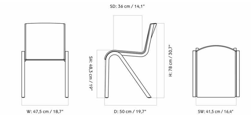 READY DINING CHAIR обладает оптимальными размерами, которые обеспечивают максимальный комфорт. Высота стула составляет 78 см, ширина – 47.5 см, а глубина – 50 см. Высота сиденья 47.3 см и глубина сиденья 36 см позволяют удобно расположиться за обеденным столом. Таким образом, вы сможете наслаждаться долгими и приятными вечерами в кругу семьи и друзей.