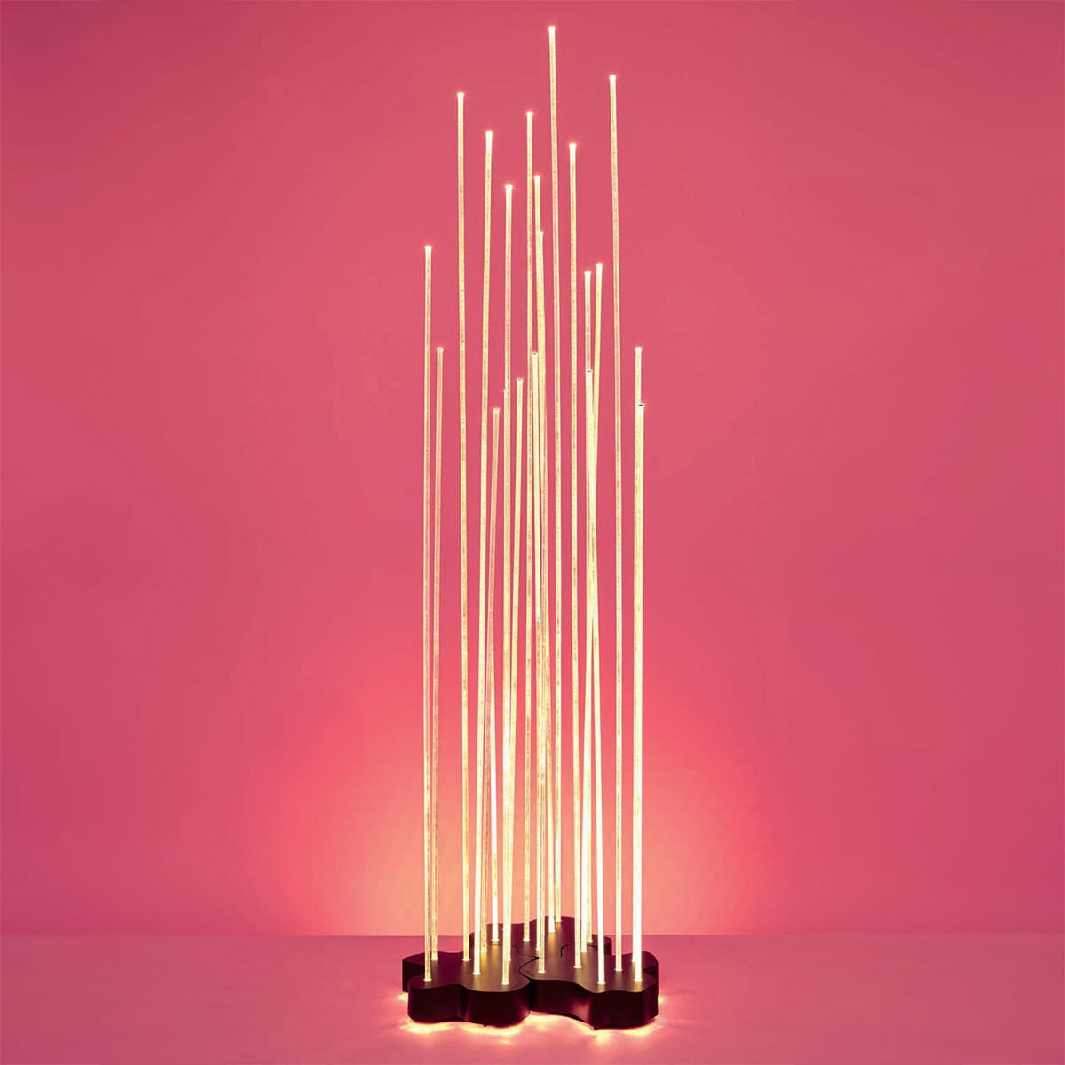 Оригинальный напольный светильник Reeds изготавливается из алюминия, технополимера и ABS. Свет отражается через трубки разной высоты, чтобы создать ощущение тростниковых зарослей. Также часть света отражается вокруг основания лампы. Подробнее о данной модели уточняйте у менеджеров или в PDF инструкции.