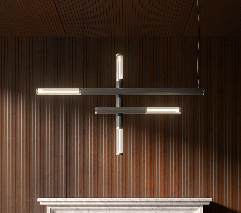 Светильник Regata представляет собой динамичную композицию из трех перекрещивающихся стержней, напоминающих мачту с натянутыми парусами. Основной корпус из сатинированного металла сочетается с торцевыми элементами из прозрачного банковского стекла, внутри которых расположены светодиодные источники. Соединительные элементы из брашированной латуни не только выполняют техническую функцию, но и становятся декоративными акцентами. Светильник Regata демонстрирует принцип "технической элегантности", где функциональные элементы становятся частью художественного замысла. Модель особенно выразительна в композициях из нескольких элементов, создающих сложные пространственные ритмы.