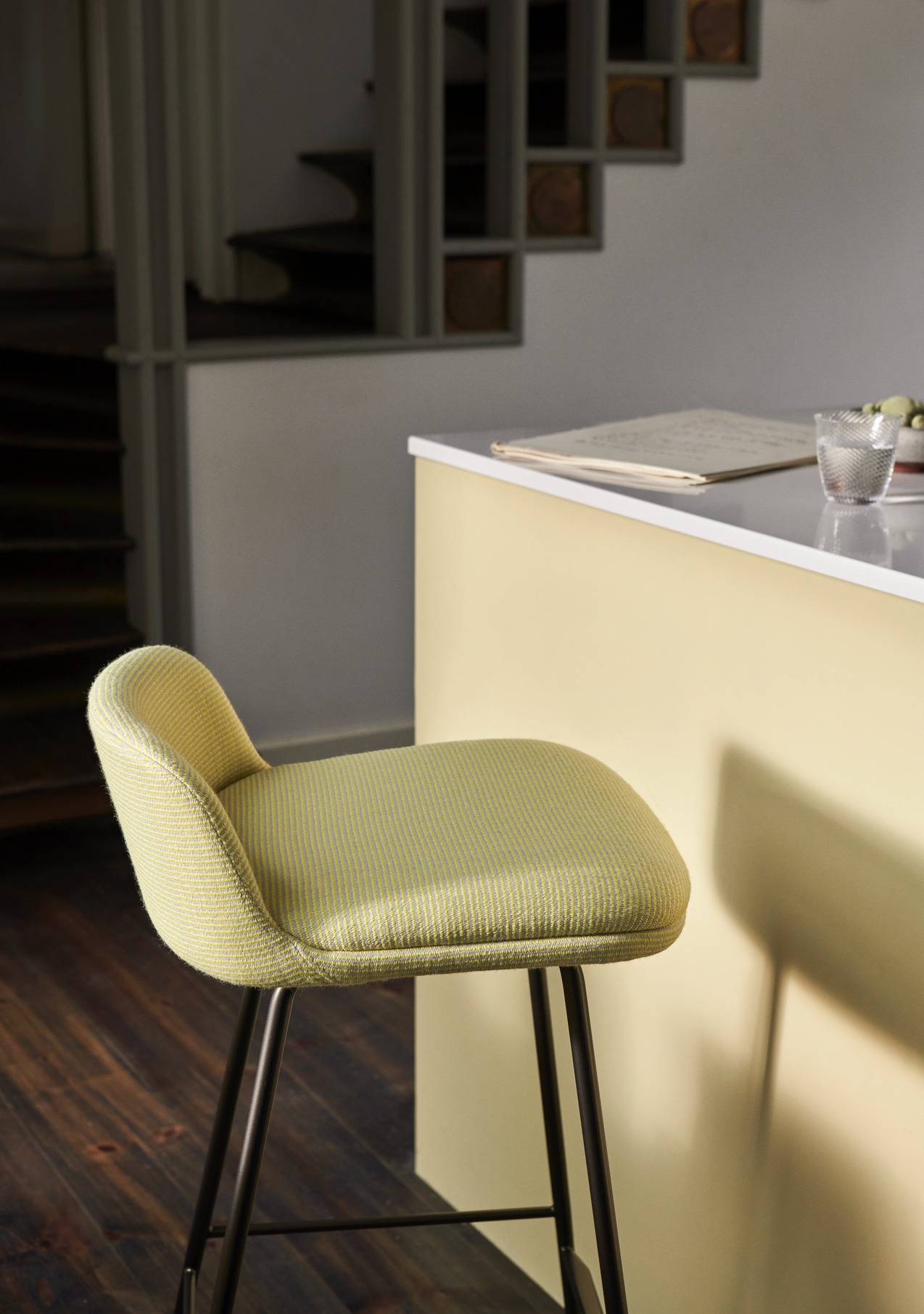 Rely создан для максимального комфорта даже при длительном пребывании, они сохраняют узнаваемую форму коллекции Rely — оболочка полностью изготовлена из переработанного пластика, отдавая дань устойчивому дизайну без компромиссов в эстетике. Ножки — в двух вариантах: чёрные или бронзированные, чтобы гармонично вписаться в любой стиль — от индустриального до тёплого минимализма. Для тех, кто ценит мягкость — доступна опциональная тканевая обивка. Барные и контровые стулья, идеально подходящие как для офисных пространств, так и для гостеприимных интерьеров — от коворкингов до баров и кафе.