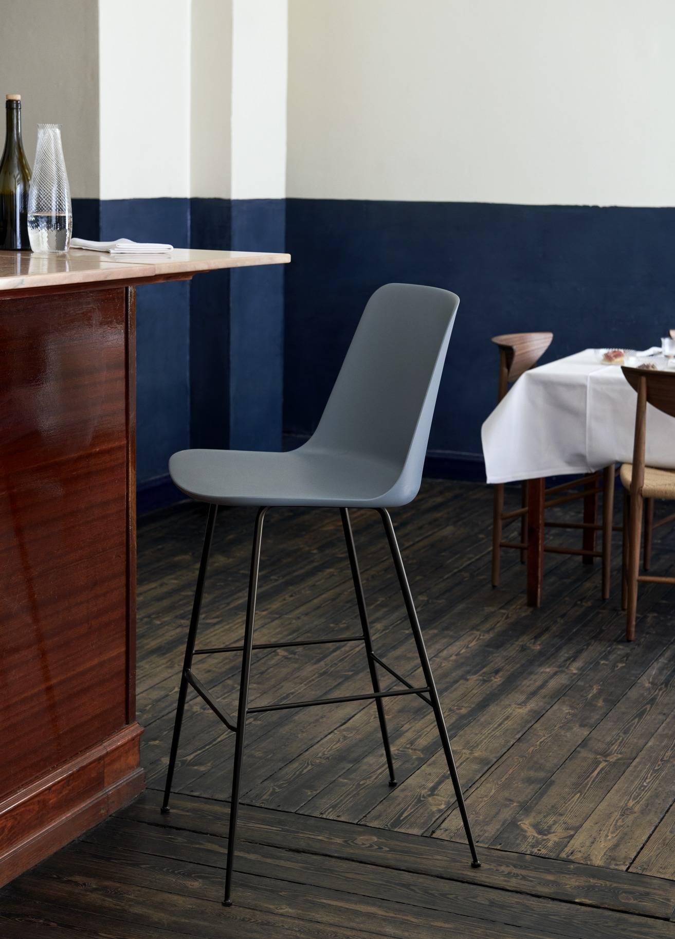 Rely создан для максимального комфорта даже при длительном пребывании, они сохраняют узнаваемую форму коллекции Rely — оболочка полностью изготовлена из переработанного пластика, отдавая дань устойчивому дизайну без компромиссов в эстетике. Ножки — в двух вариантах: чёрные или бронзированные, чтобы гармонично вписаться в любой стиль — от индустриального до тёплого минимализма. Для тех, кто ценит мягкость — доступна опциональная тканевая обивка. Барные и контровые стулья, идеально подходящие как для офисных пространств, так и для гостеприимных интерьеров — от коворкингов до баров и кафе.