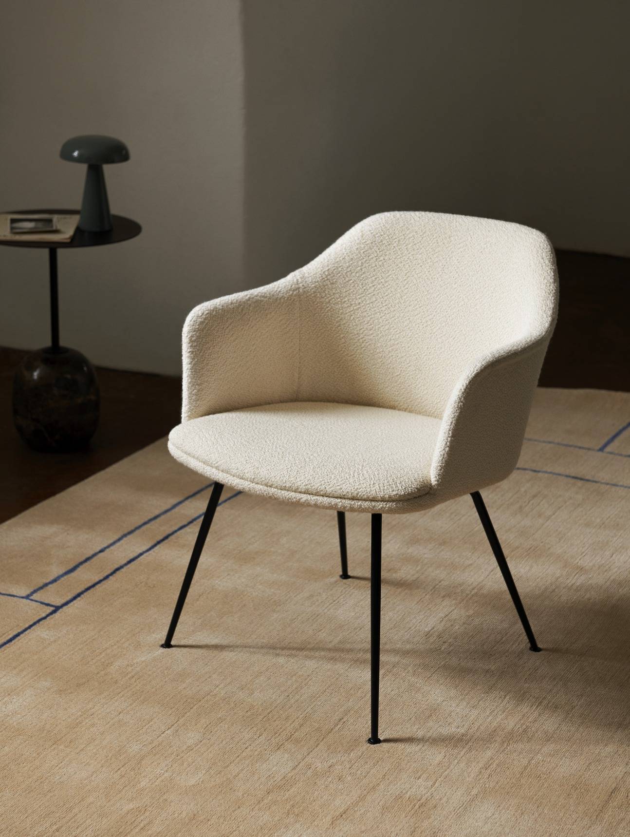 Rely, Lounge Chair — комфорт, который не требует объяснений. Его полностью обитая тканью конструкция обеспечивает мягкую, поддерживающую посадку — идеальную для долгих часов за столом, ужина или тихого чтения. Скошенные ножки придают стулу лёгкость и визуальную мягкость, делая его универсальным решением: будь то перед рабочим столом, у обеденного стола или в зоне отдыха.