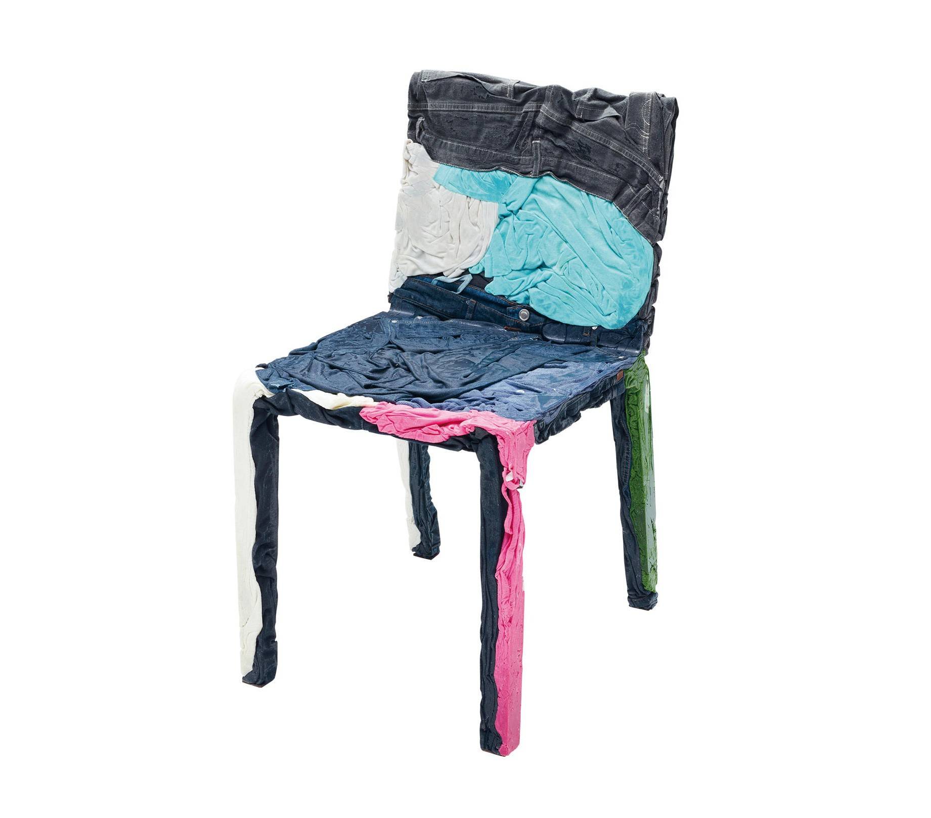 Стул Rememberme, по замыслу дизайнеров, сочетает в себе воспоминания прошлого и надежды будущего. Для обивки используются джинсы и футболки в разных оттенках, и все это заливается специальной смолой. Уникальность модели заключается в том, что каждый стул получается эксклюзивным, не бывает повторений. Есть возможность сделать обивку из собственных старых любимых вещей, и, таким образом, сохранить их навсегда.