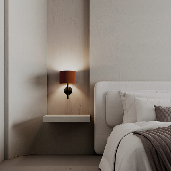 REMS A1318 - настенный светильник сочетает в себе современные материалы и изысканный дизайн, создавая атмосферу уюта и комфорта. Металлическое основание, выполненное в матовом черном цвете, придает светильнику строгость и лаконичность, а абажур из натуральной кожи добавляет теплоты и текстуры.