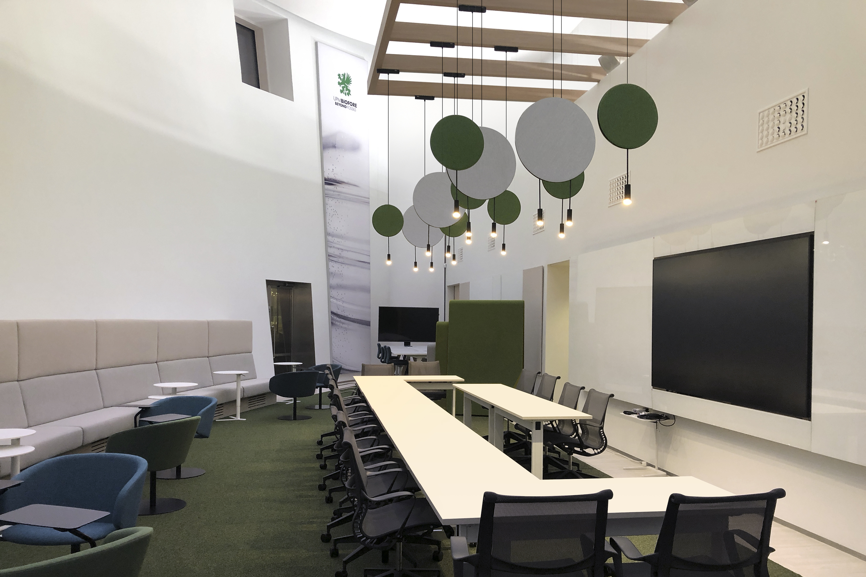 Revolta Suspension Acoustic универсален: он подходит как для общего освещения пространства, так и для локальной подсветки отдельных зон. Светильник органично дополнит интерьер столовой, кухни, бара, офиса или рабочего кабинета, сочетая в себе эстетическую привлекательность и функциональность.