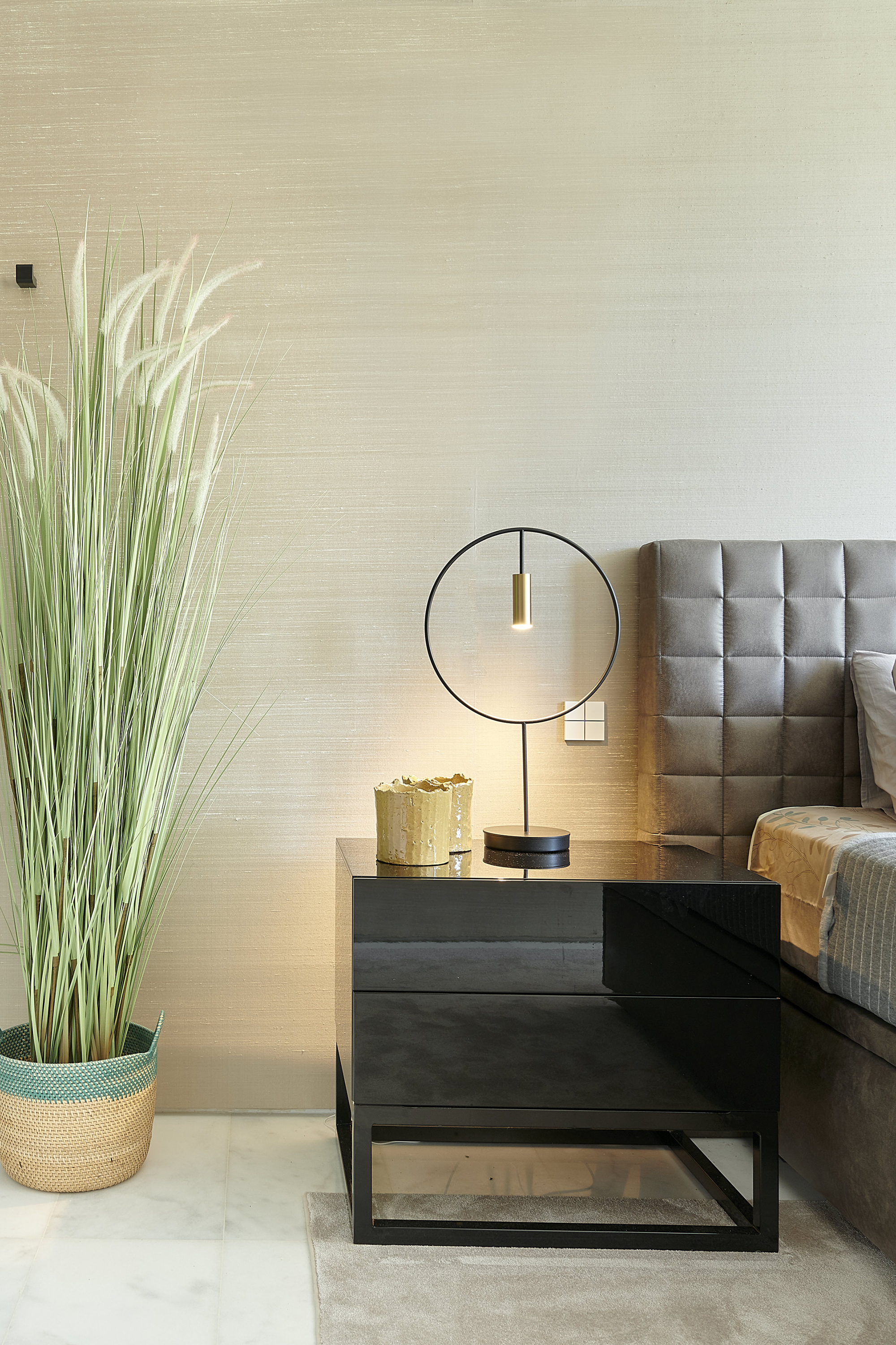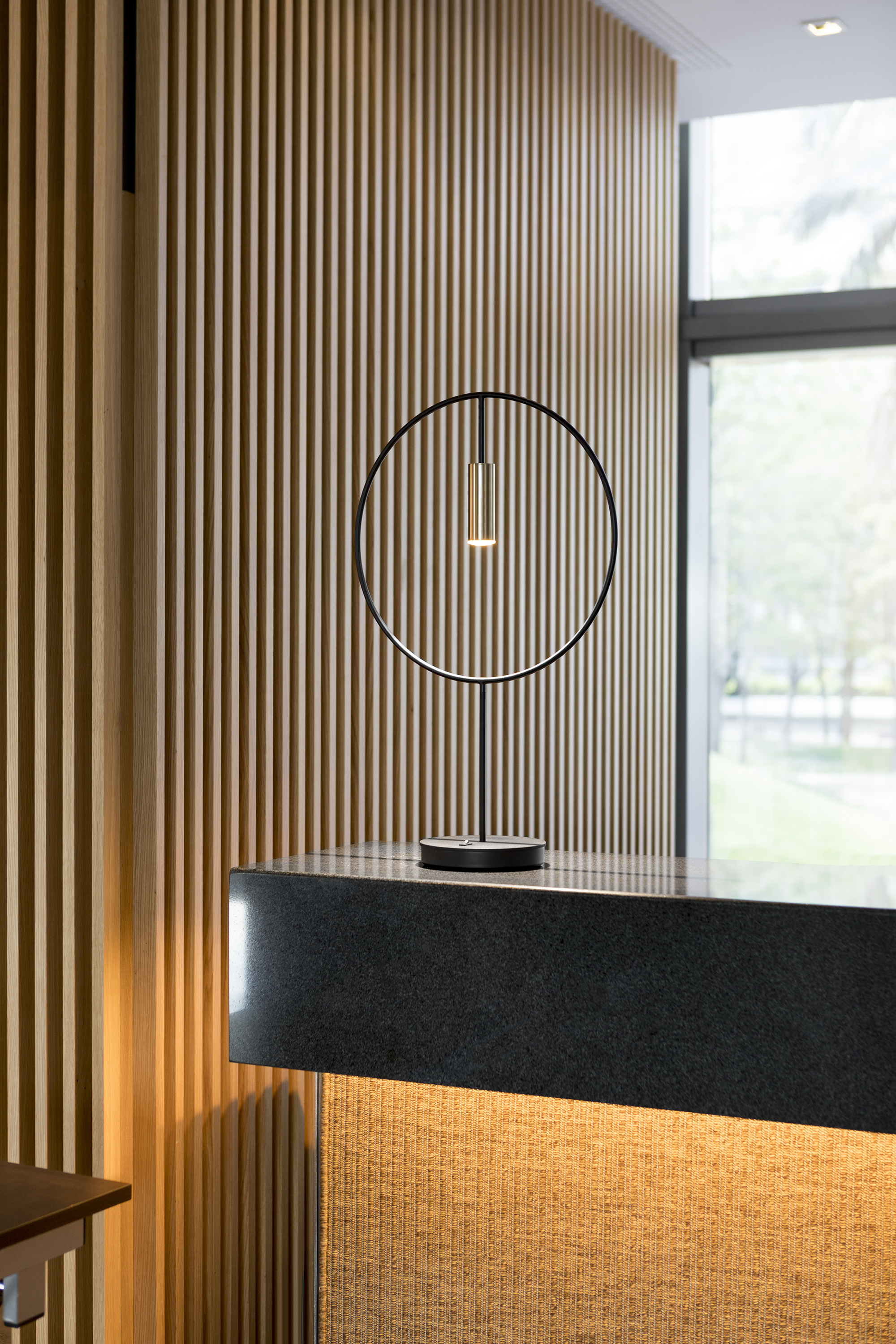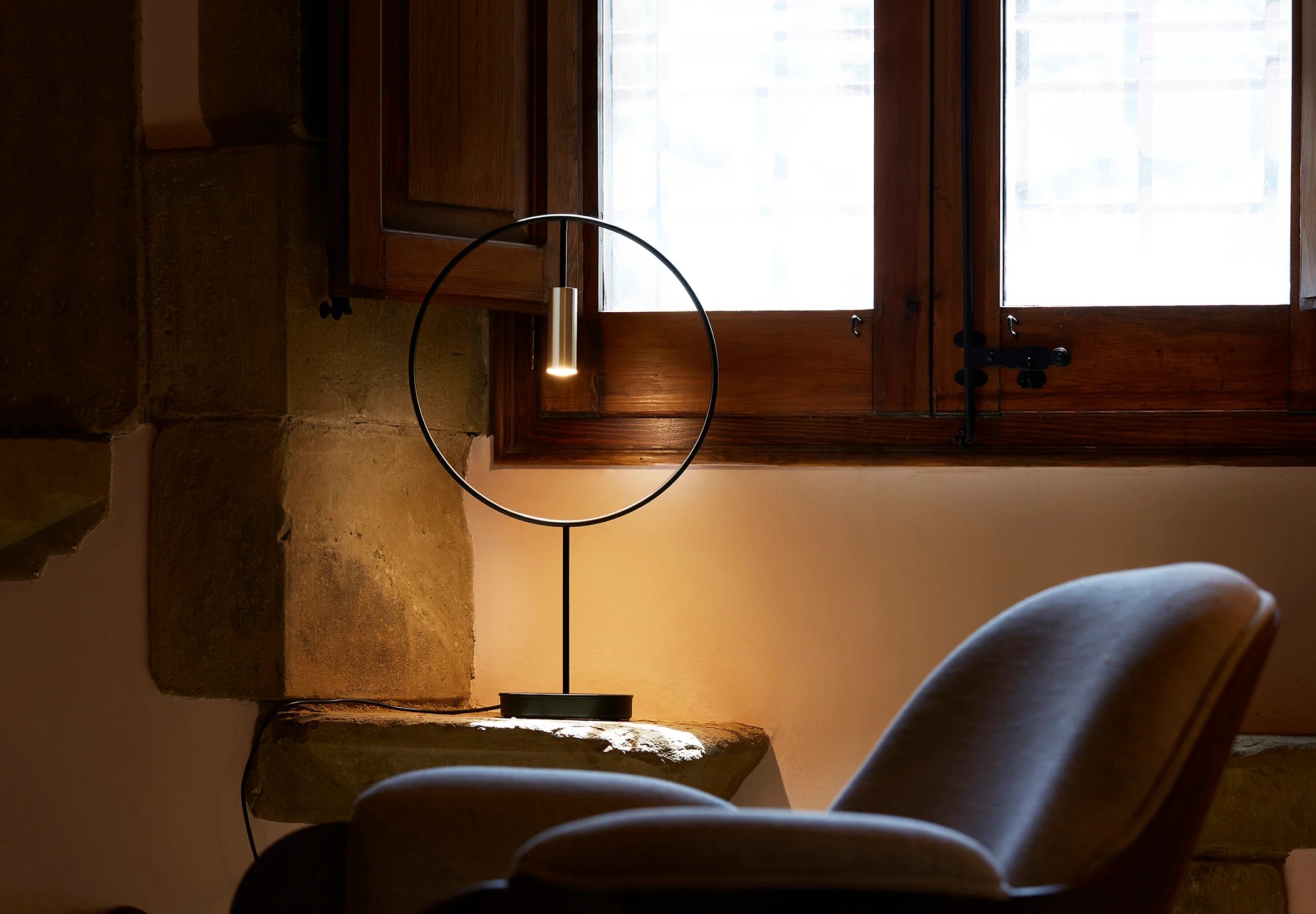 Revolta Table — настольная лампа с лаконичным дизайном. Её округлый корпус дополнен цилиндрической головкой из алюминия, выполненной в контрастной гамме: чёрный цвет сочетается с золотистыми элементами.
