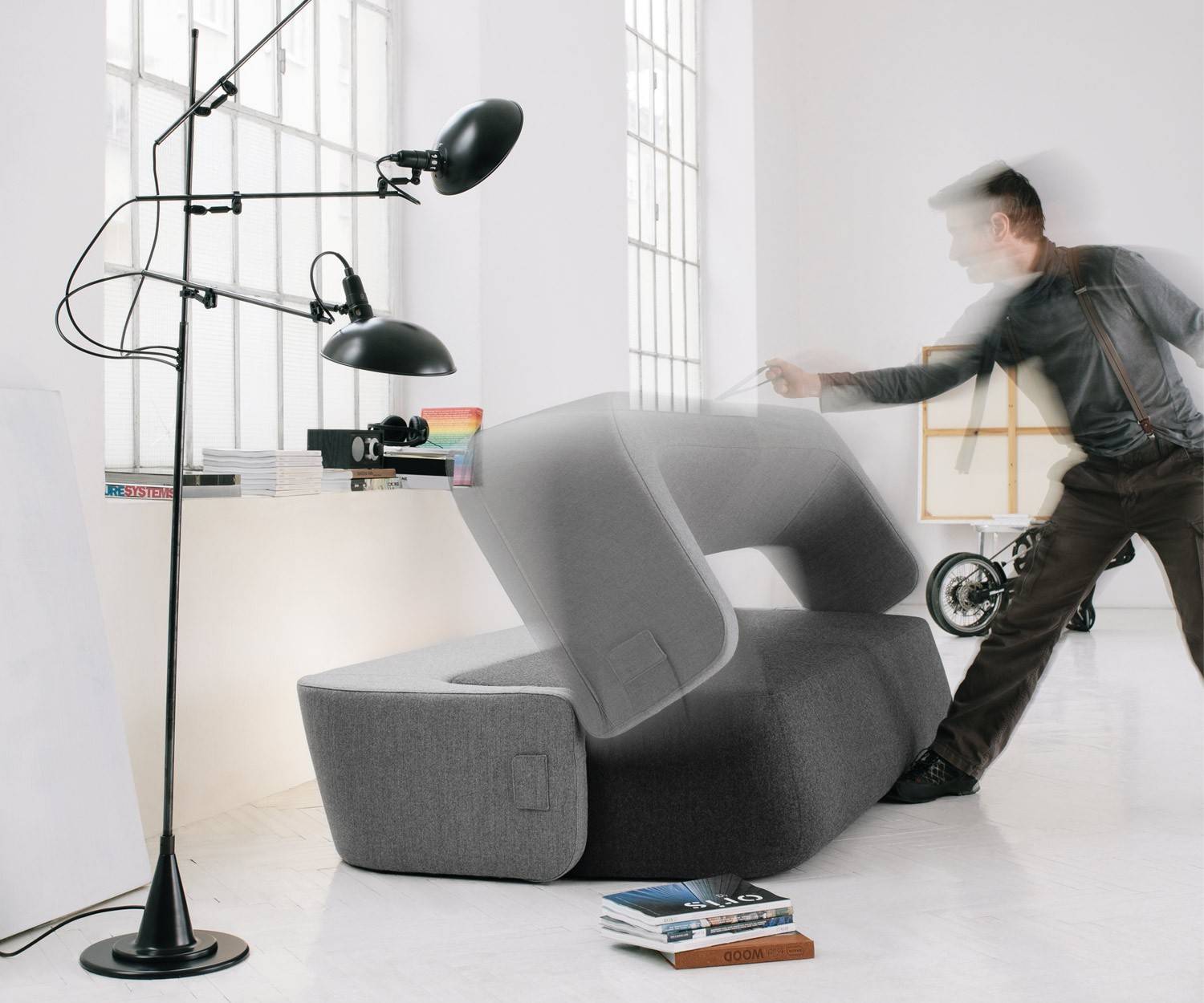 Revolve — многофункциональный диван, объединяющий функции дивана и кровати совершенно новым способом. Его дизайн выделяется в любом интерьере, придавая ему дополнительную ценность. Простым поворотом спинки на 180 градусов этот диван трансформируется в кровать. Revolve — отличный двухместный диван-кровать. Это достигается использованием наполнителя из холодной пены, который применяется при изготовлении матрасов для обычных кроватей. Таким образом мы получаем одинаковую мягкость по всей поверхности дивана, как в центре, так и на стыках. Динамичная форма дивана и двойная функция позволяют использовать этот диван в интерьере дома, офиса или загородного дома.nnСхему трансформации можно увидеть в PDF-инструкции.