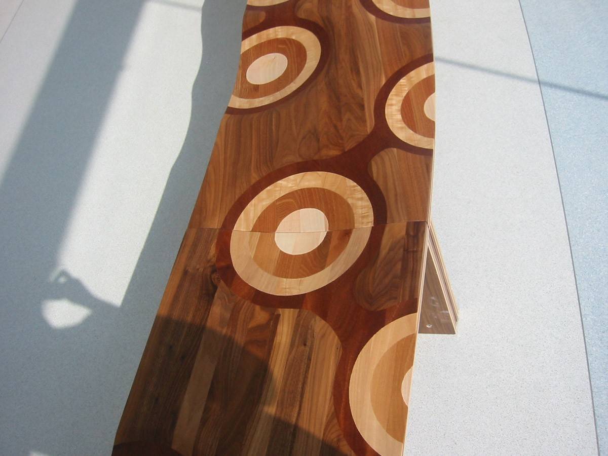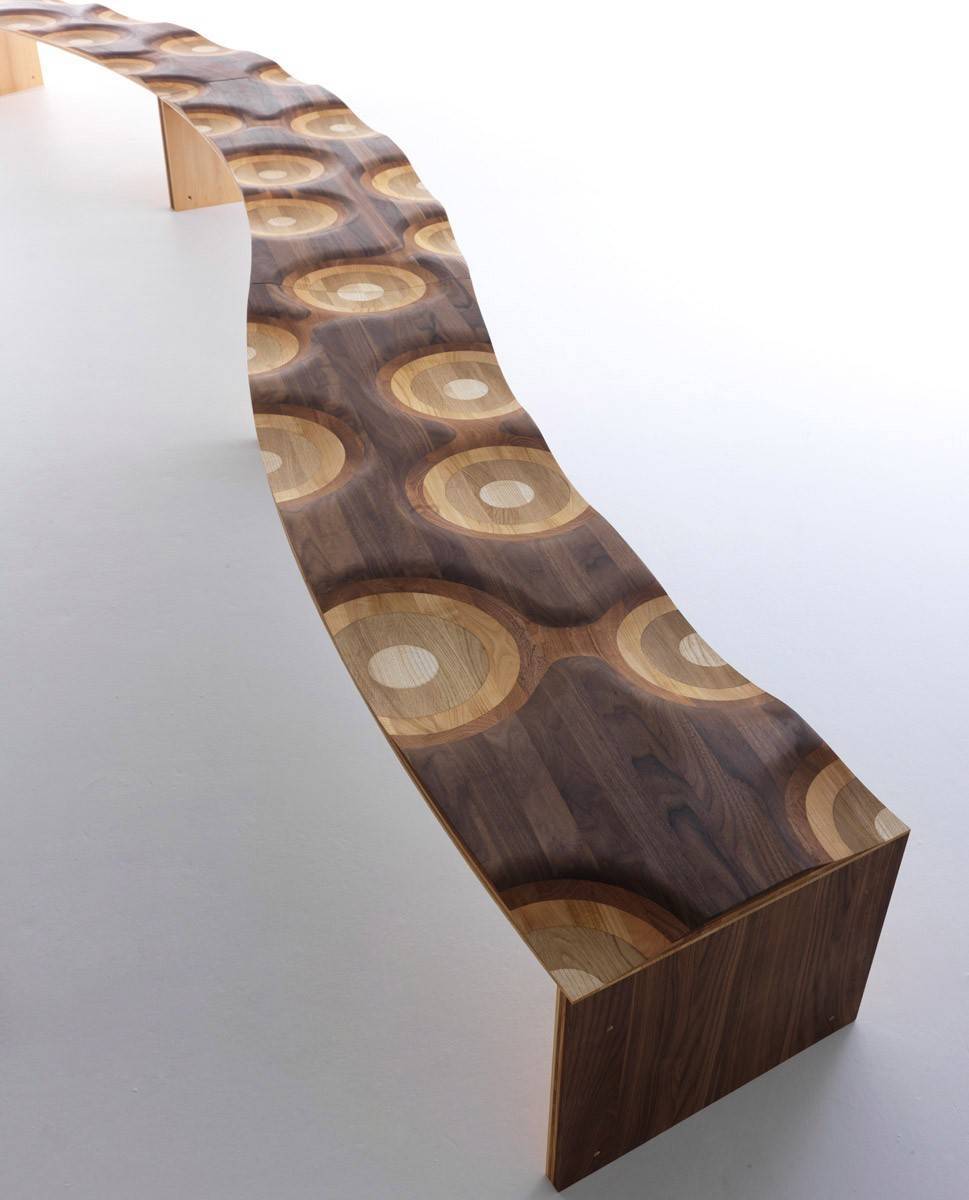 Модель Ripples выполнена из многослойной ламинированной фанеры, из массива пяти разных пород дерева. Проведя рукой по поверхности скамьи нельзя определить, где заканчивается орех и начинается красное дерево, вишня, дуб или ясень. На поверхности скамьи вручную вырезано несколько "сидений", что делает скамью Ripples не только красивой, но и очень удобной.nМодули, из которых состоит скамья Ripples Like a River, можно комбинировать, создавая разнообразные композиции. С возможными вариантами комбинаций вы можете ознакомиться в ПДФ-инструкции.