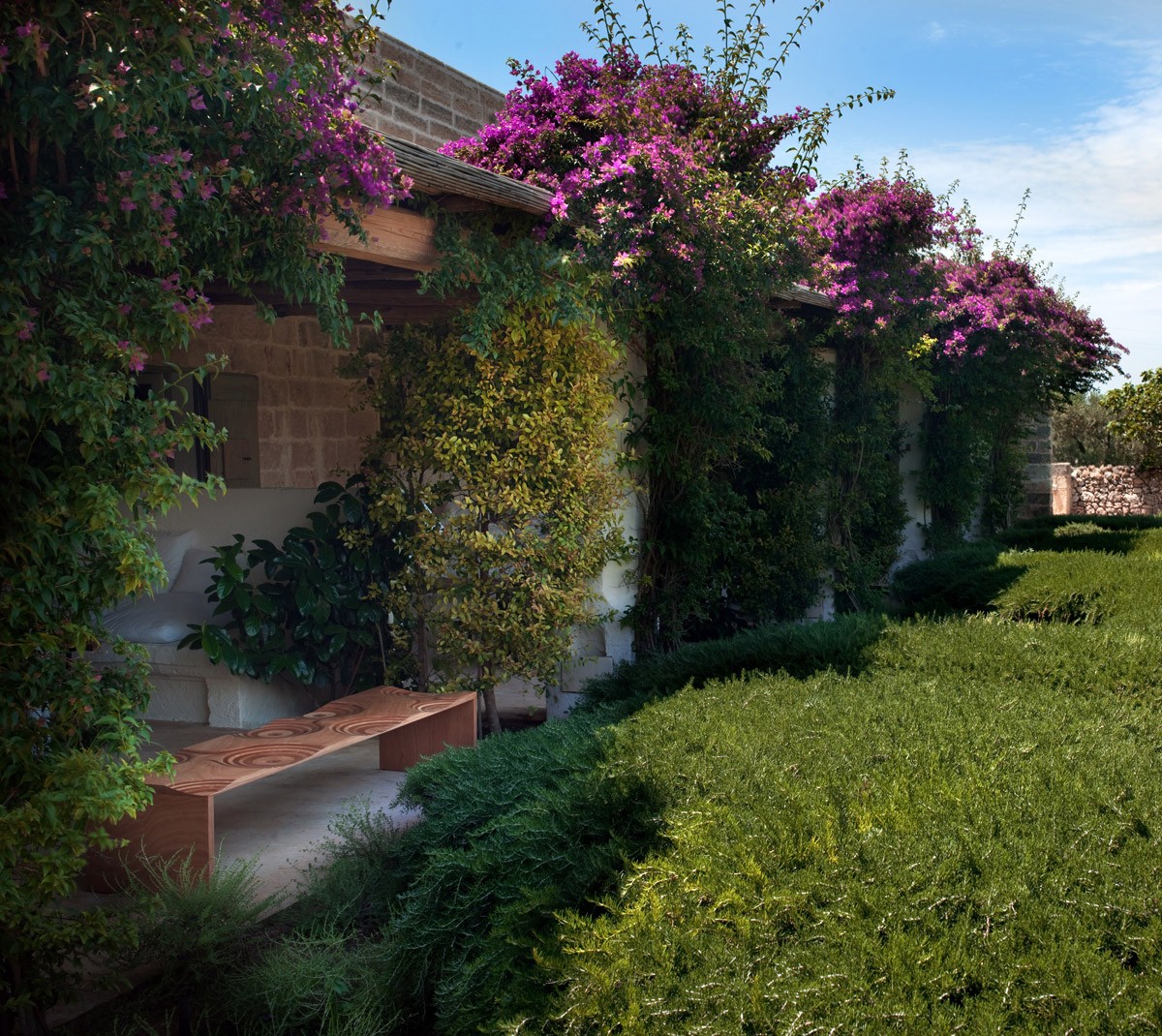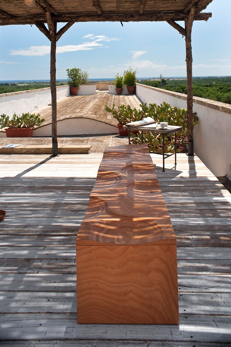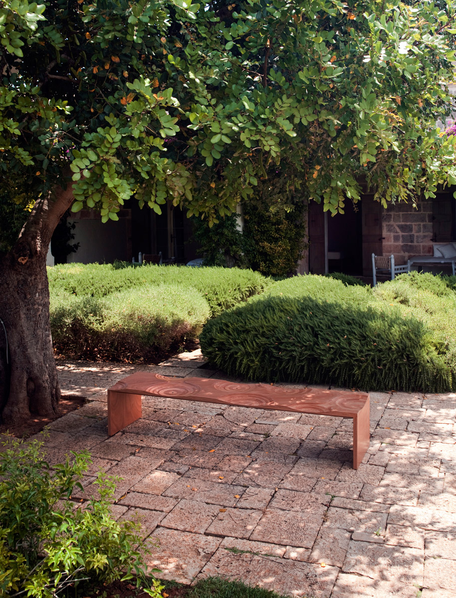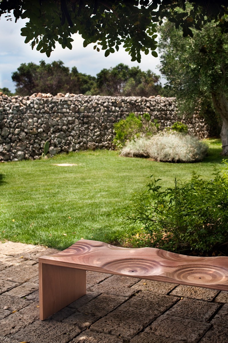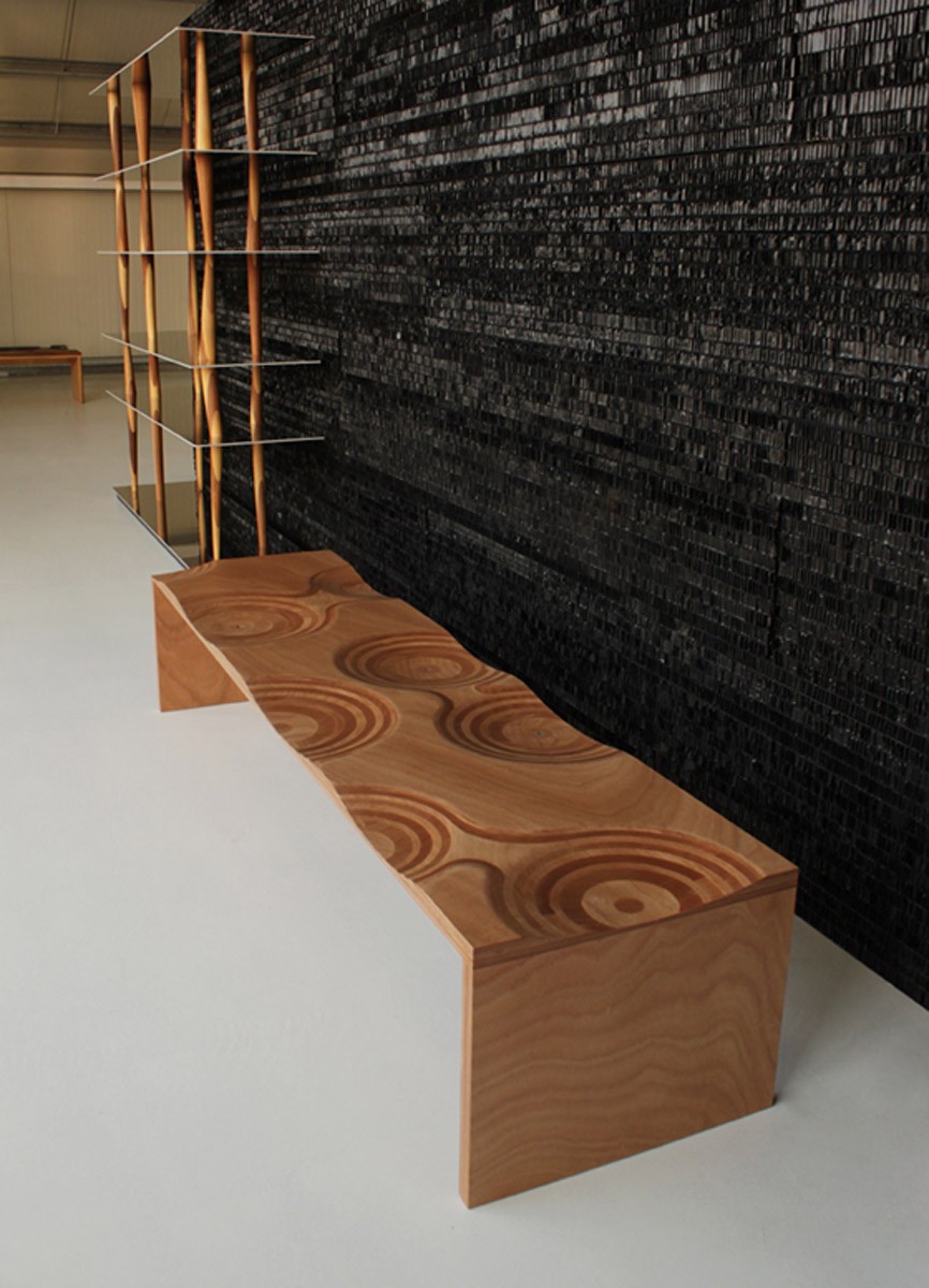 Модель Ripples Outdoor выполнена из дерева окуме, которому не страшны ни влага, ни мелкий дождь, благодаря чему ее можно размещать на улице. На поверхности скамьи вручную вырезано несколько "сидений", что делает скамью Ripples не только красивой, но и очень удобной.