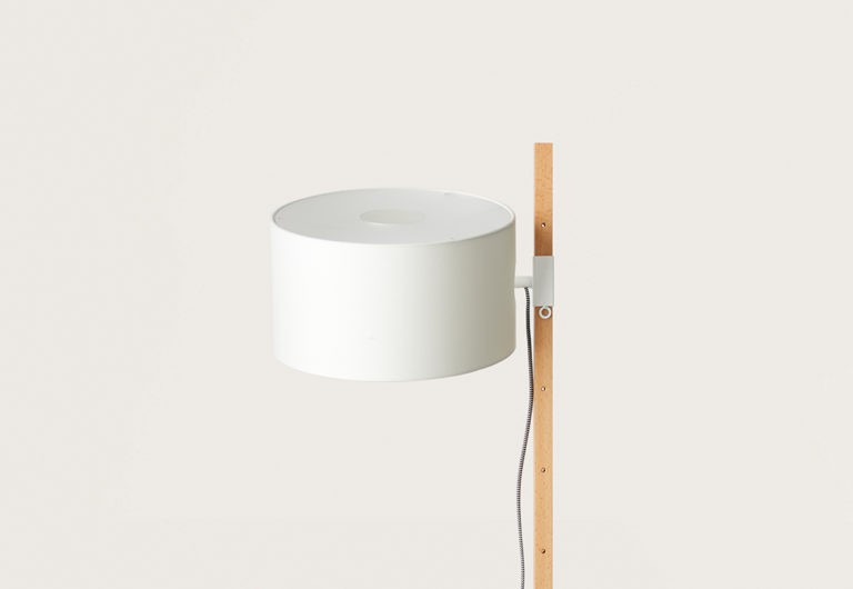 Металлические элементы торшера доступны в матовых оттенках черного и белого, что позволяет подобрать оптимальный вариант, соответствующий цветовой гамме вашего пространства. Деревянные детали выполнены из натурального бука, добавляющего изделию природную текстуру и ощущение тепла. Абажур из ткани представлен в двух классических цветах – черном и белом, обеспечивая мягкое и рассеянное освещение.