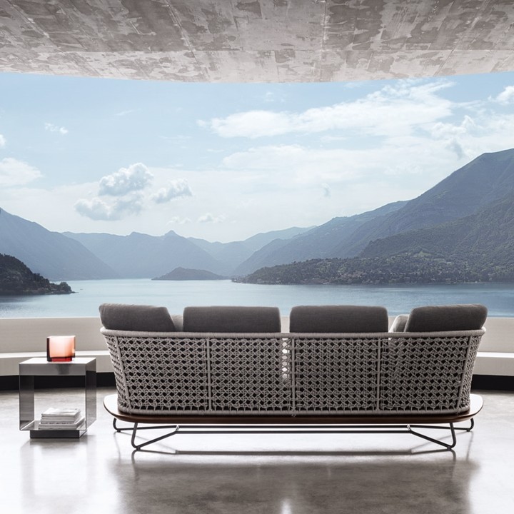 Коллекция Rivera от фабрики Minotti включает в себя уличную мебель, которая позволяет насладиться отдыхом. Каркас дивана Rivera изготавливается из древесины. Ножки сделаны из металла. Сиденье и спинка наполнены пенополиуретаном, который отличается упругостью. Спинка обтягивается переплетением из тканевых шнуров. Диван обивается водонепроницаемой тканью. Доступно несколько вариантов цвета обивки. Диван можно использовать на улице, благодаря использованию специальных влагостойких материалов.