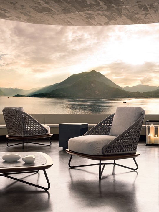Коллекция Rivera от фабрики Minotti включает в себя уличную мебель, которая позволяет насладиться отдыхом. Каркас кресла Rivera изготавливается из древесины. Ножки сделаны из металла. Сиденье и спинка наполнены пенополиуретаном, который отличается упругостью. Спинка обтягивается переплетением из тканевых шнуров. Кресло обивается водонепроницаемой тканью. Доступно несколько вариантов цвета обивки. Кресло можно использовать на улице, благодаря использованию специальных влагостойких материалов.