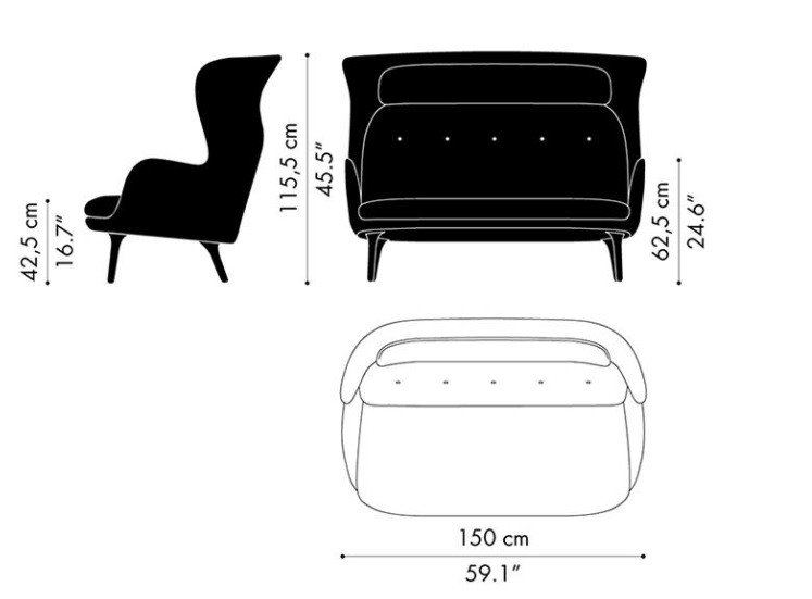 Высота дивана составляет 115.5 см. Длина – 150 см. Глубина – 97 см. Такие параметры делают его оптимальным для различных планировок. Он поместится в гостиной, спальне или даже кабинете.