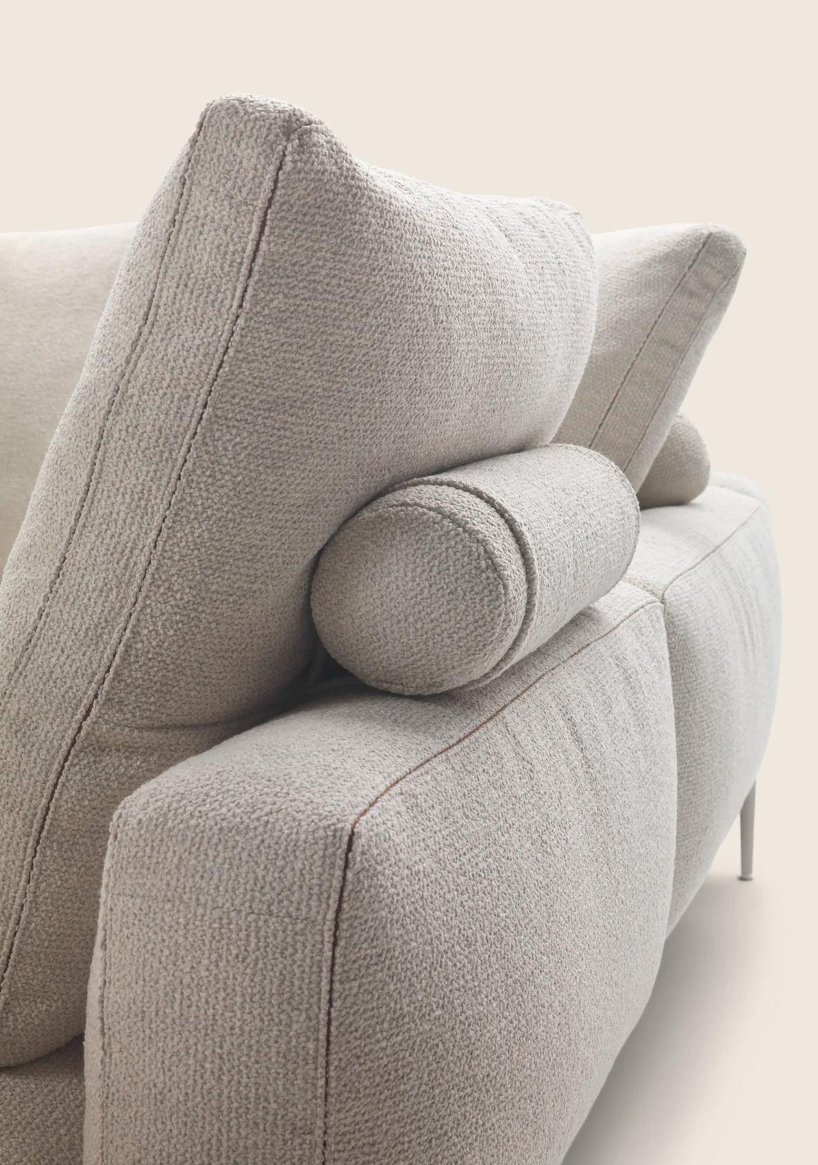 Диван Romeo — это воплощение утонченного дизайна и безупречного комфорта. Его легкий, почти воздушный силуэт создан благодаря тонким ножкам из литого алюминия. Они придают мебели изысканную элегантность. Продуманные пропорции и тщательно проработанные детали подчеркивают мастерство исполнения. Деликатный кант из репсовой ленты добавляет гармонию линий.