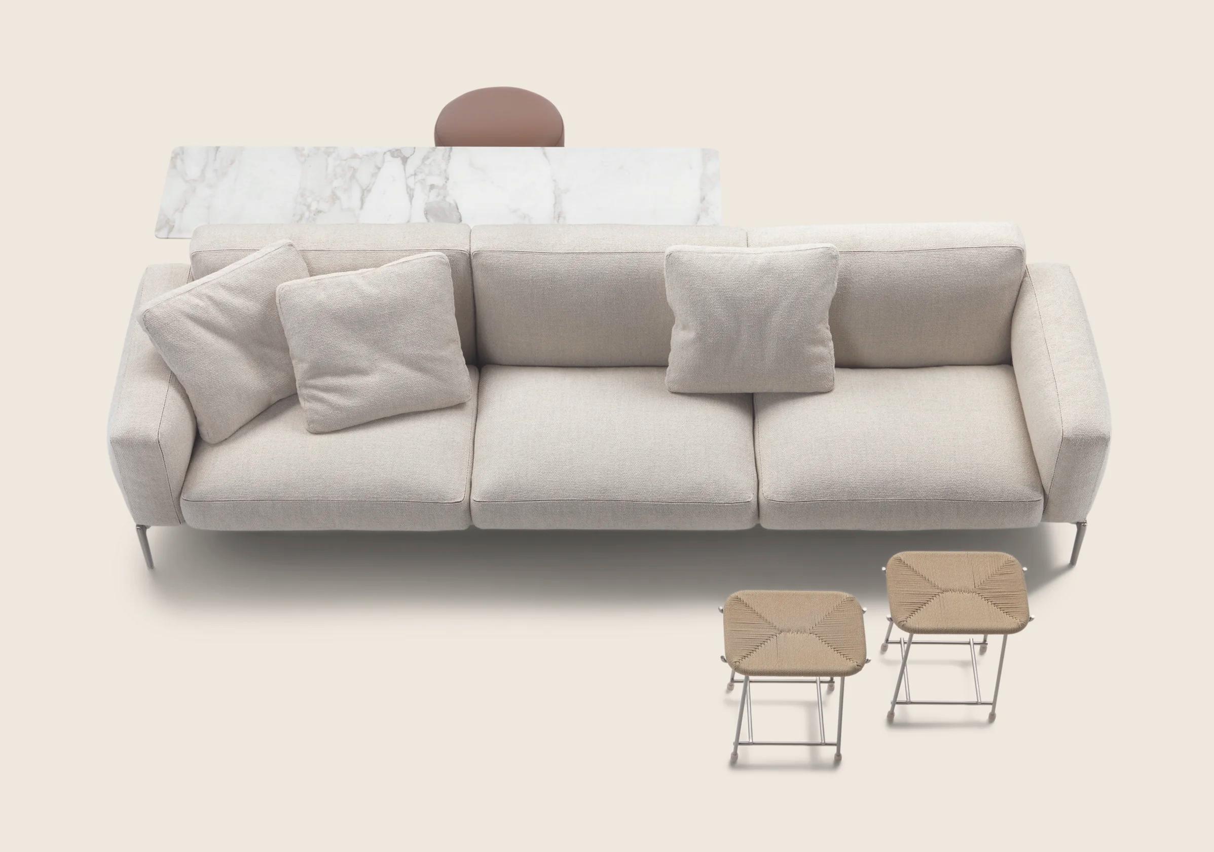 Его отличительная особенность — уменьшенная глубина. Это делает модель идеальной для помещений с ограниченным пространством. Несмотря на компактность, диван сохраняет все преимущества своей серии. Мягкие пышные подушки, аккуратные линии и безупречное качество исполнения подчеркивают его стиль.
