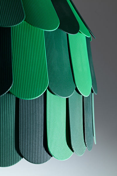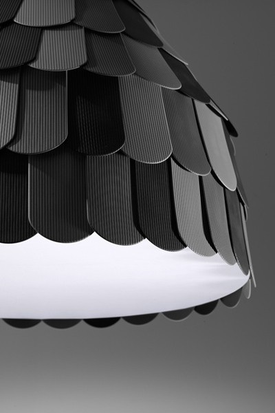 Fabbian Roofer — коллекция подвесных светильников, выполненных в стиле «модерн». Дизайн серии вдохновлён внешним видом крыш и поэтому абажур составляется из небольших резиновых деталей, напоминающих черепицу, которые надеваются на металлический каркас. Светильник отлично впишется в современный интерьер и разнообразит его.