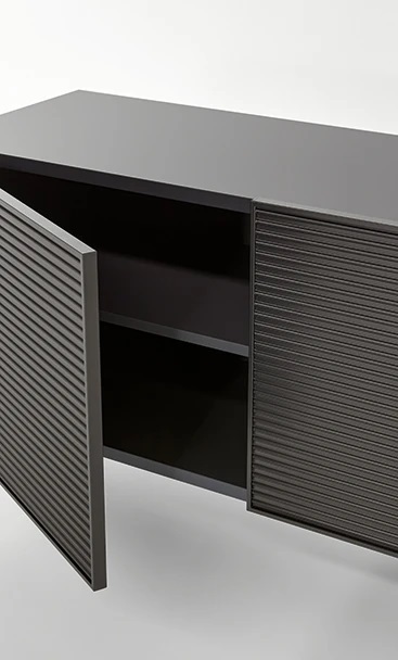 Дверцы и основание из металла и алюминия усиливают современный характер дизайна, добавляя ему технологичности и контраста.