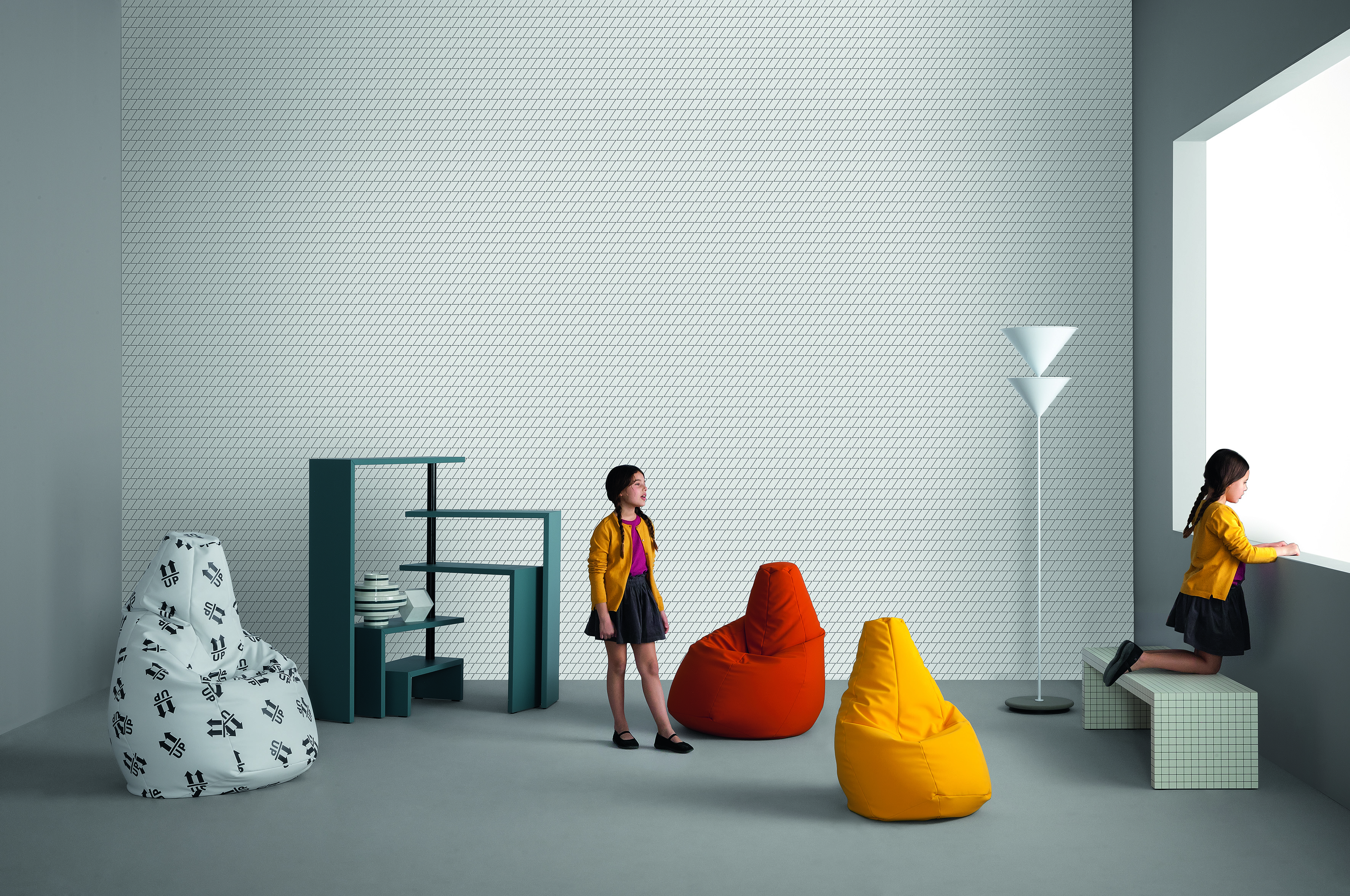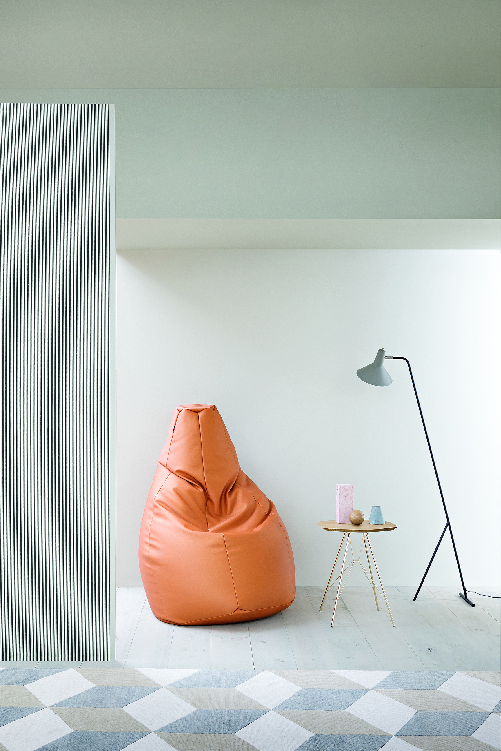 Кресло-мешок Sacco с наполнителем из полиэстеровых шариков. Кресло доступно с обивкой из ткани или кожи. Для использования на улице возможно использовать обивку из искусственной кожи (Tecnopelle). Данной модели в 2008-м исполнилось 40 лет. Она дала начало целому направлению в дизайне мебели — изготовлению бескаркасных кресел.