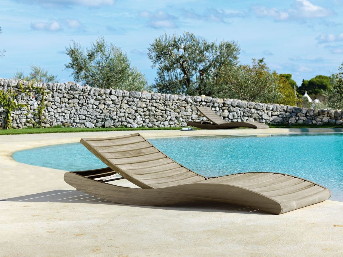 Шезлонг Sahara от фабрики Ethimo имеет уникальную изогнутую форму. Модель изготавливается из натурального тика. Шезлонг может быть дополнен мягкими подушками и матрасом. Дополнительно можно приобрести чехол от дождя. Коллекция Sahara включает в себя шезлонги нескольких размеров. Более подробную информацию можно уточнить у менеджера.