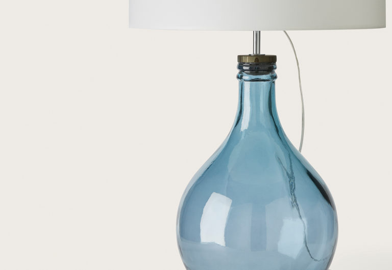 Лампа настольная Sam NAC093 от Aromas, с колбовидным основанием из стекла, станет эффектным акцентом в дизайне помещения. Эта фирменная модель выполнена в сине-белой гамме. Сдержанная цветовая палитра выгодно акцентирует оригинальность форм светильника. Его основание и ножка представляют собой изящную колбу с выразительными округлыми сторонами. От узкой горловины поднимается трубчатый стержень с установленной лампой мощностью 60 Вт. Лампочка скрыта за белым цилиндрическим абажуром из ткани.