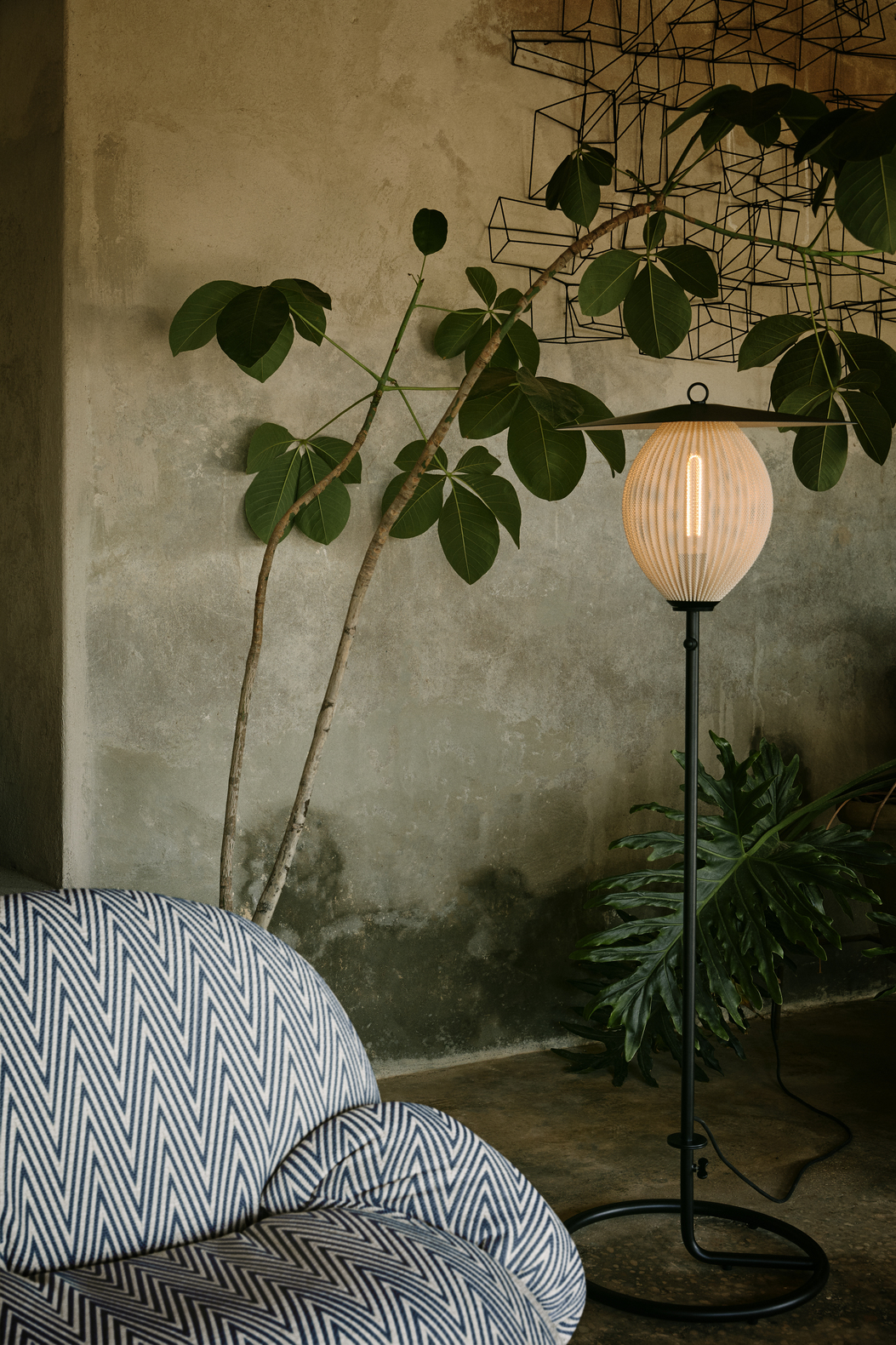 Satellite Outdoor Floor Lamp – это современный, игривый и скульптурный светильник, созданный на основе оригинального дизайна Матье Матего (Mathieu Matégot) 1953 года. Он идеально подходит для использования на крытых патио, верандах или в других защищенных обеденных зонах. Игривый силуэт с овальным плафоном из перфорированной нержавеющей стали и алюминиевым колпачком, направляющим свет. Доступны варианты: полуматовый кремово-белый (Cream White Semi Matt) или золотисто-горчичный (Mustard Gold).