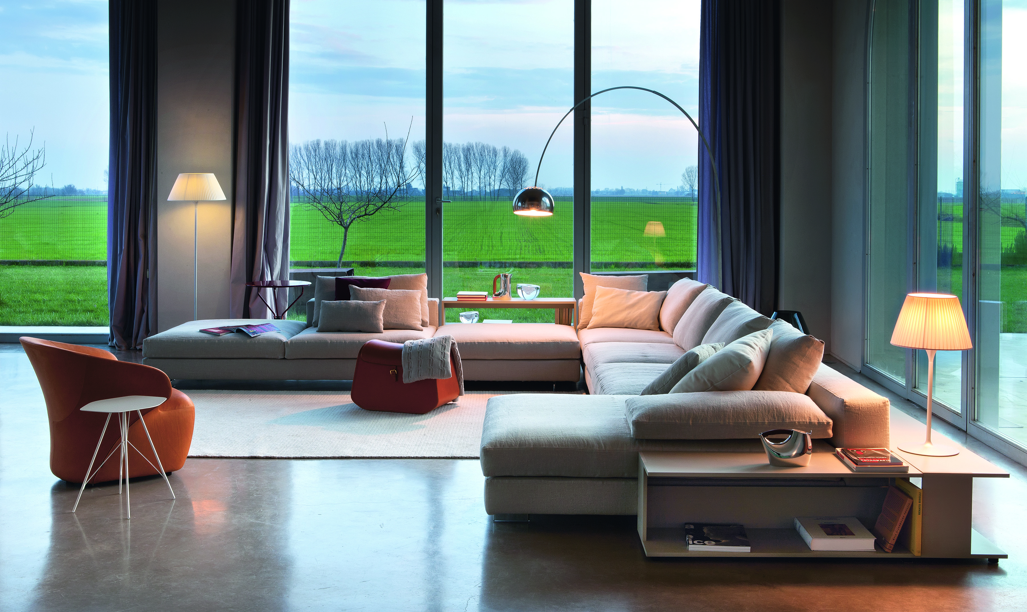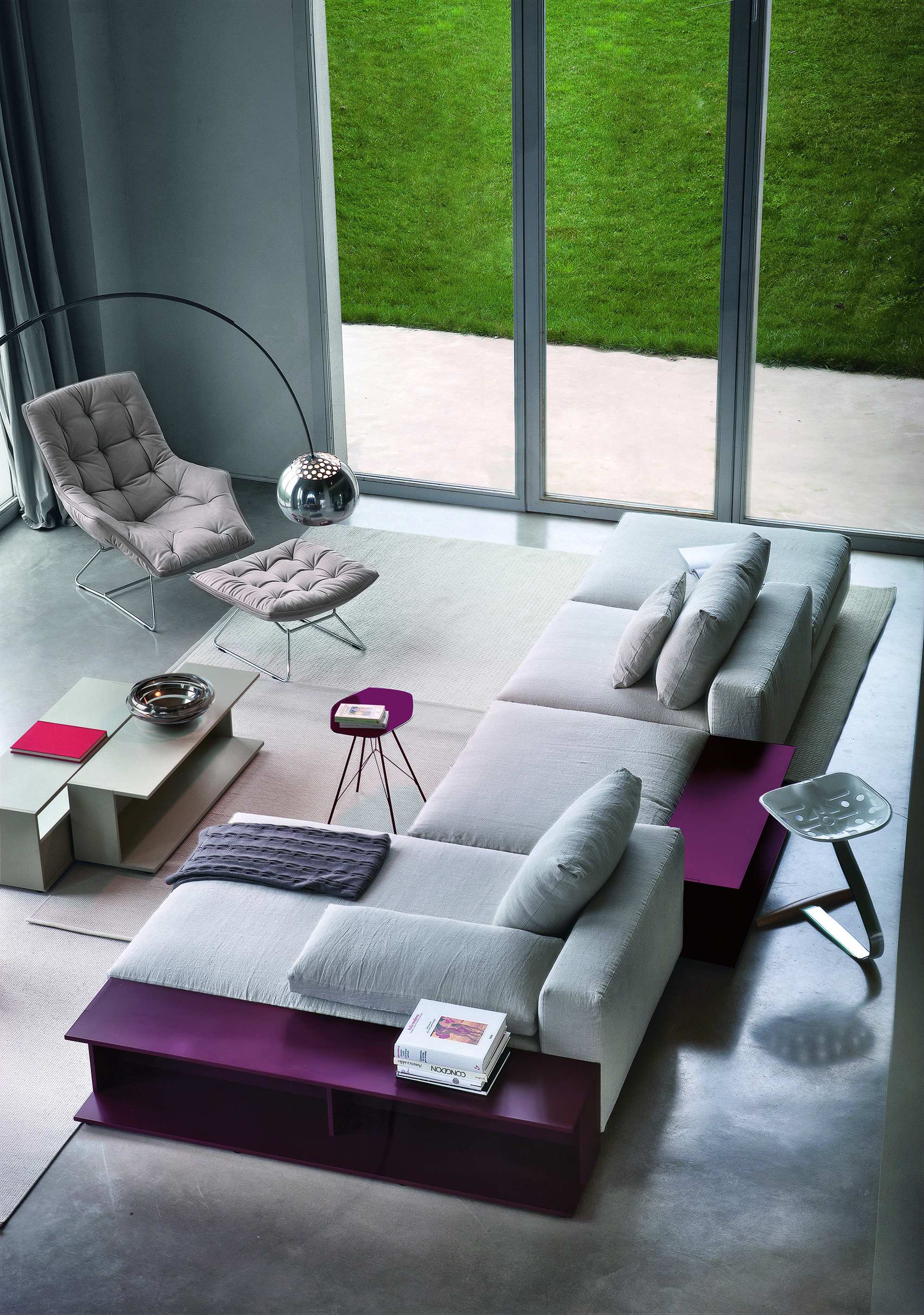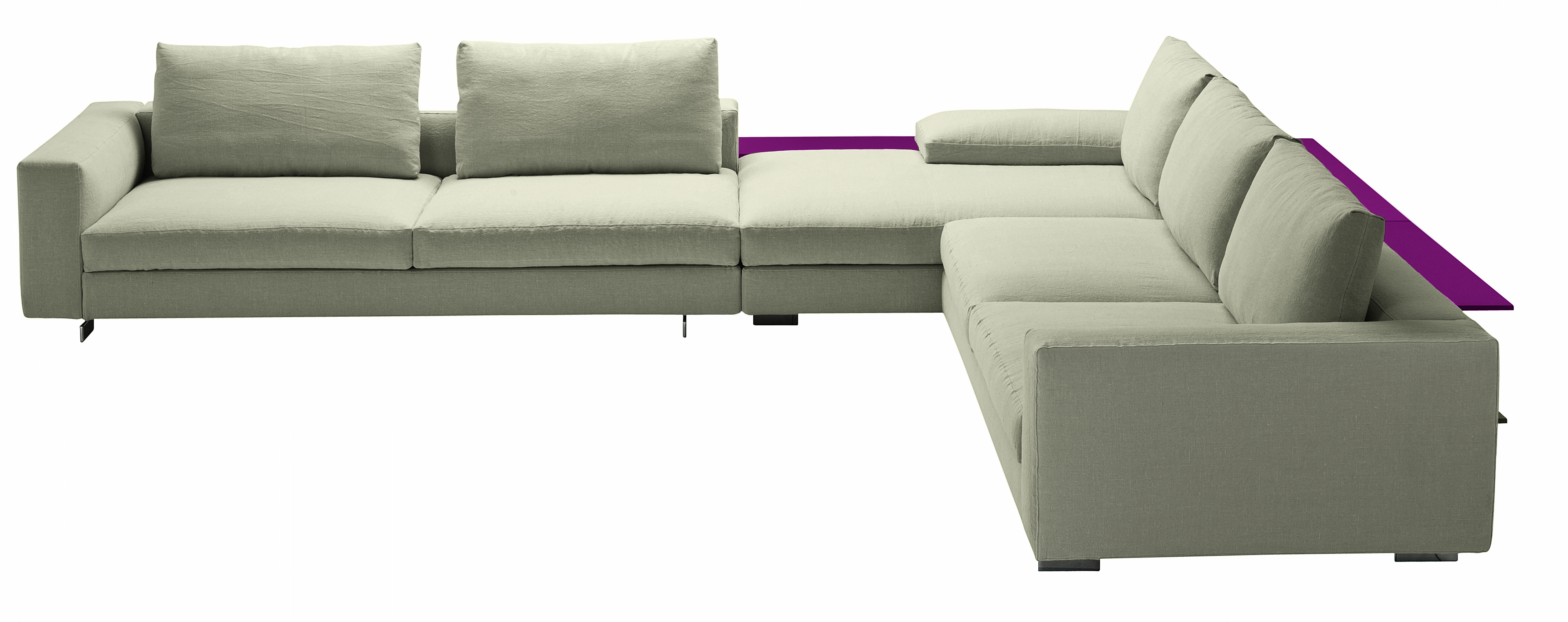 Диван Scott от итальянской компании Zanotta. Серия прямых и угловых модульных диванов, есть возможность собрать собственную композицию. "Скрытый" металлический каркас. Ножки изготовлены из алюминиевого сплава, поверхность полированная или никелированная. Упругость сиденью и спинке придают эластичные ремни. Наполнитель — полиуретан или дакрон Du Pont. Подушки сиденья с наполнителем из полиуретана и полиэстерового волокна, спинки — 100% гусиное перо. Съемная обивка — текстиль или кожа из коллекции производителя.