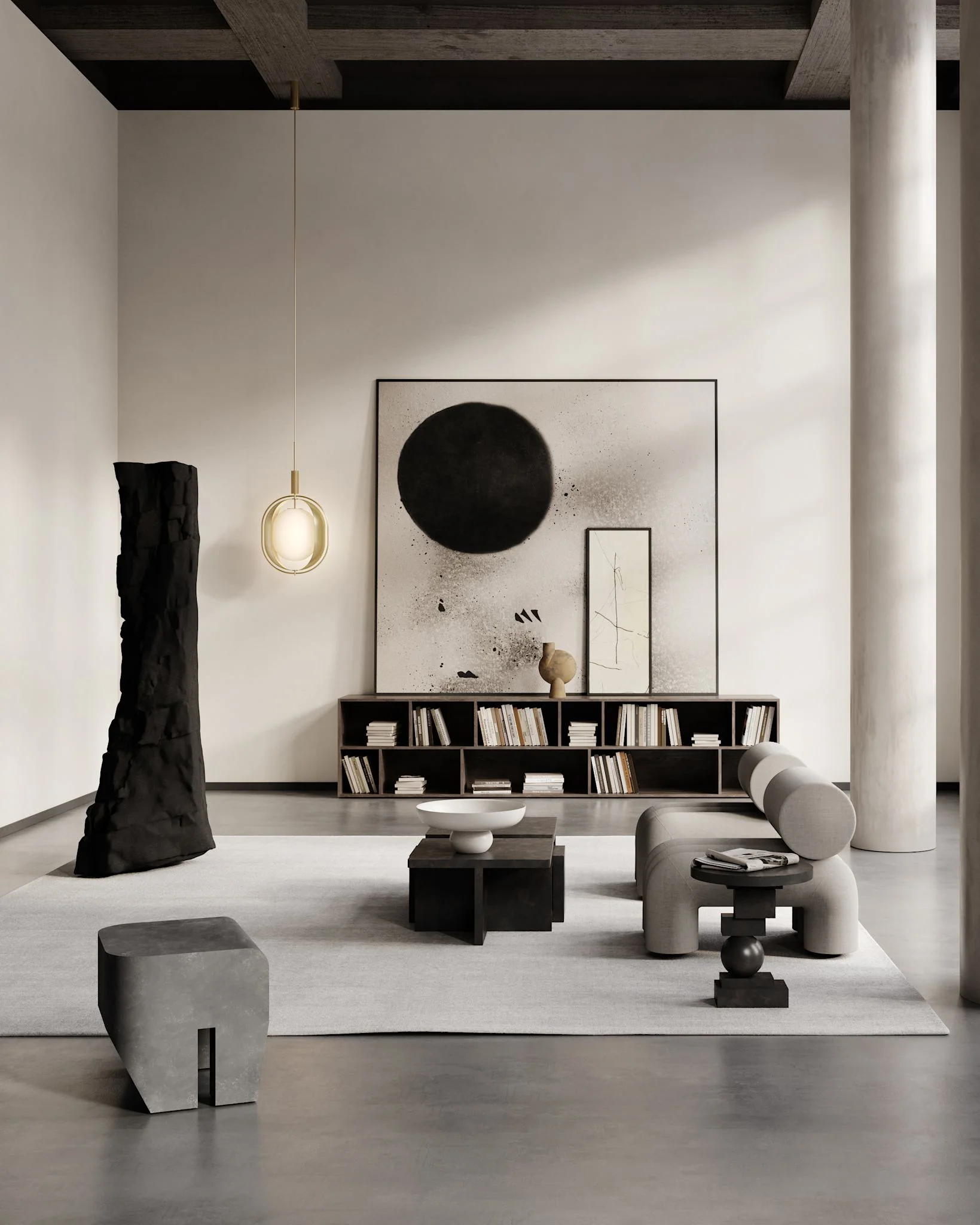 Дизайн табурета Sculpt Stool черпает вдохновение в бруталистской архитектуре середины XX века, где бетон, монументальность и лаконичные формы становятся главными выразительными средствами. Как и здания этого направления, табурет воплощает мощь и простоту через геометричную блочную структуру, отсылая к эстетике необработанных бетонных поверхностей и строгих архитектурных объемов.