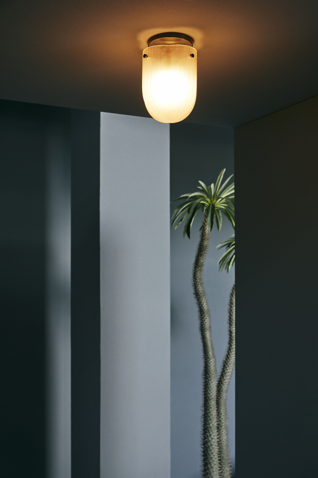 Описание потолочного светильника GUBI Seine Ceiling Lamp, разработанного Space Copenhagen в 2022 году, вдохновлено игрой света в движущейся воде, что достигается использованием узорчатого выдувного стекла. Светильник из коллекции Seine доступен в двух вариантах отделки плафона: