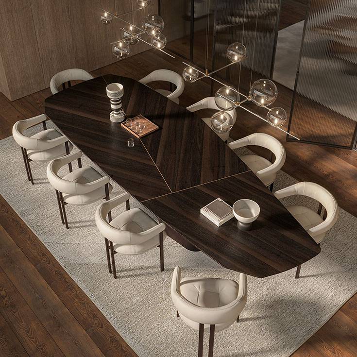Коллекция Senator открывается впечатляющей четырехметровой моделью с декорированным стеклом, созданной для просторных столовых, статусных офисов и представительных интерьеров. Производитель предлагает несколько вариаций, включая круглые столы Senator Round и Senator Ker-Wood Round, а также версии Senator Keramik и Senator Wood с керамической и деревянной столешницами. Каждая модель демонстрирует сочетание монументальности и художественной выразительности, подходя как для частных резиденций, так и для проектов коммерческого назначения.