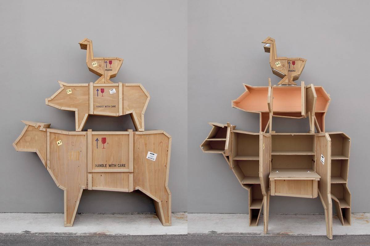 Коллекция Sending включает в себя шкафы в виде животных: коровы, свинки и гуся. Все модели изготавливаются из дерева. Предметы семейства Sending являются как декоративными, так и функциональными в интерьере. Подробности о данной модели уточняйте у менеджеров или в PDF инструкции.