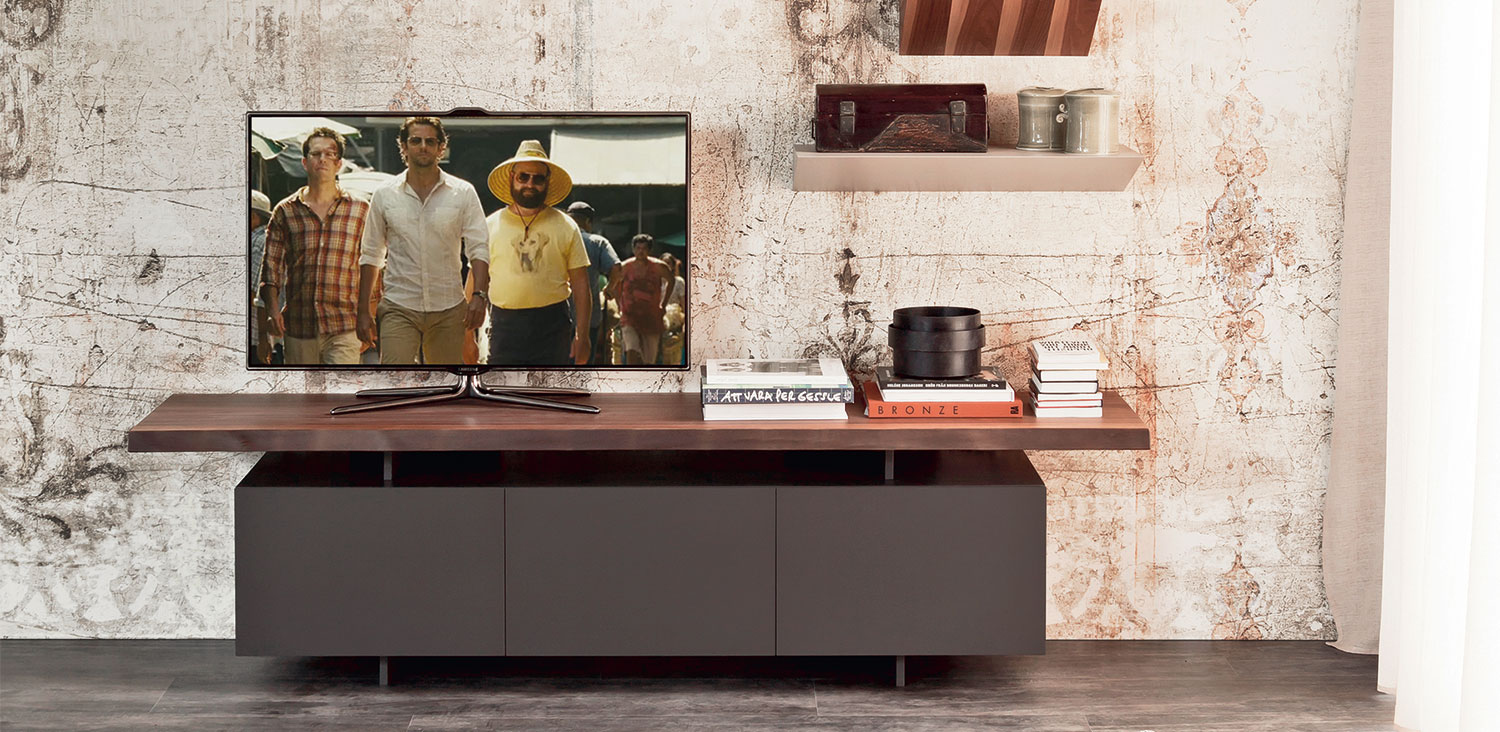 Seneca — простая, но стильная тумба для ТВ, которая станет изящным дополнением современного интерьера. Модель изготовлена из дерева, с дверцами, окрашенными в матовый белый или графитовый цвет. Столешница может быть выполнена из ореха Canaletto, жженого или натурального дуба. Тумба доступна с тремя или четырьмя дверцами. Более подробную информацию можно уточнить у менеджера.