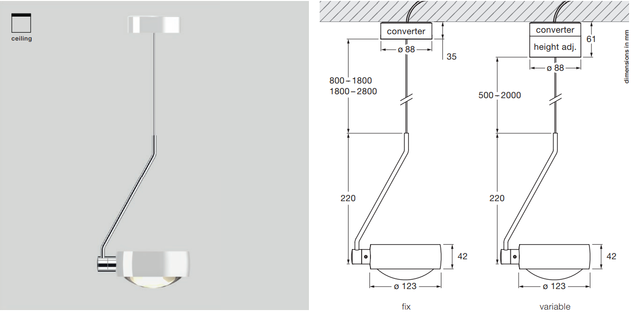 Sento filo отличается универсальностью монтажа, предлагая варианты установки на потолок, скрытую систему или трековую систему. Такая гибкость позволяет легко интегрировать светильник в любое помещение, будь то гостиная, кухня, офис, ресторан или салон красоты.