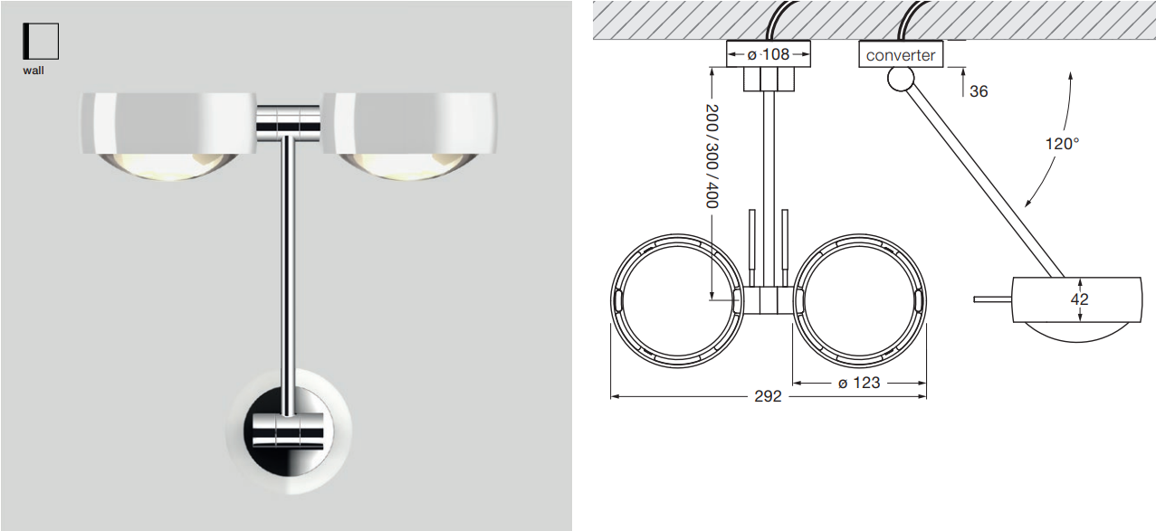 Sento parete doppio — это изысканный настенный светильник, который гармонично сочетает в себе мощный свет и элегантный дизайн. Его конструкция включает два независимых плафона, расположенных на одной базе, что позволяет гибко регулировать освещение. Вы можете настроить направление света: он может быть направлен вниз без бликов или вверх, создавая мягкий рассеянный свет. Это достигается благодаря независимой регулировке мощности и направления светового потока.