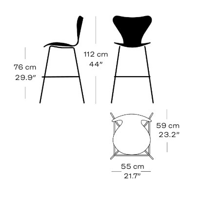 Высота сиденья 76 см идеально подходит для стандартных барных стоек. Спинка стула обеспечивает хорошую поддержку спины. Таким образом, длительное пребывание на стуле не вызывает дискомфорта. Глубина сиденья позволяет удобно расположиться.
