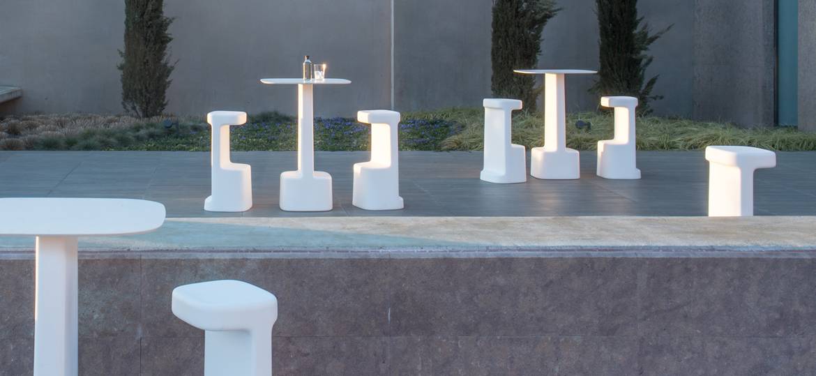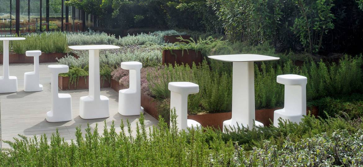 Необычный барный стол Serif изготавливается из белого или серого полиэтилена. Также в коллекцию входит барный стул. Стол можно использовать на улице, благодаря использованию специальных влагостойких материалов. Детали уточняйте у менеджеров или в PDF инструкции.