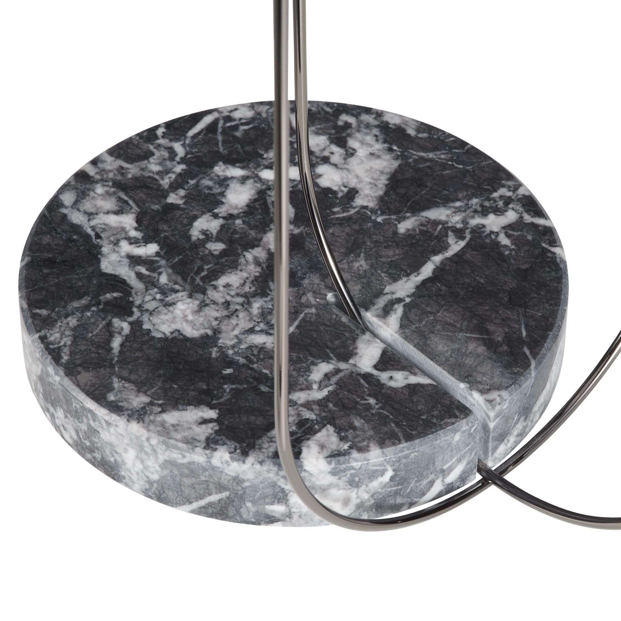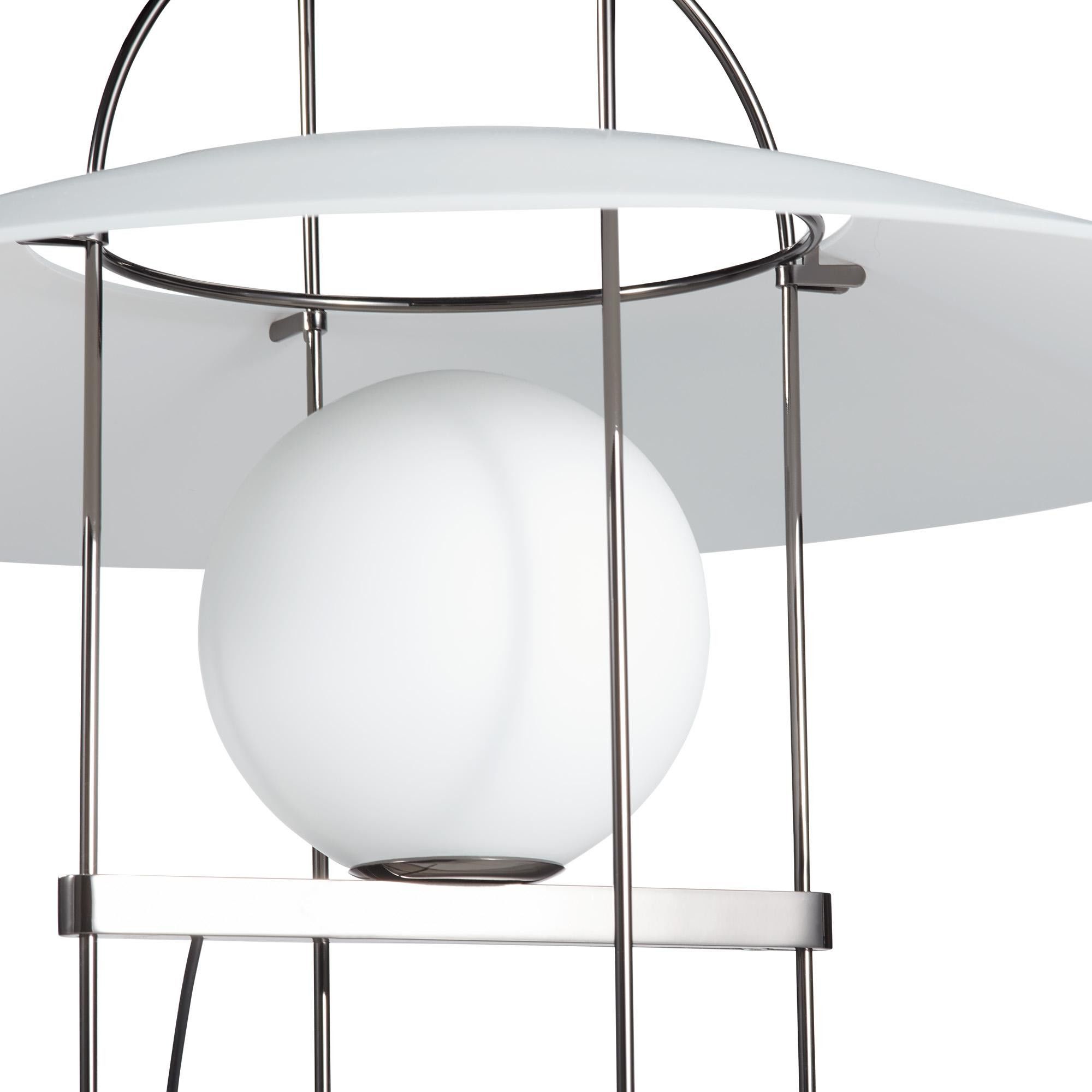 Настольная лампа Setareh от фабрики Fontana Arte состоит из круглого плафона, изготовленного из выдуваемого вручную белого сатинового стекла, который словно при помощи магии подвешен к тонкой металлической арматуре (черного или золотого цвета). Игра сферических масс и скруглённых траекторий создаёт сбалансированный образ гравитационной динамики. Свет от стеклянной сферы рассеивается в окружающее пространство, подсвечивая и подчёркивая структуру светильника. В коллекцию Setareh входят подвесные и настольные светильники. Более подробную информацию и возможные расцветки можно уточнить у менеджера.