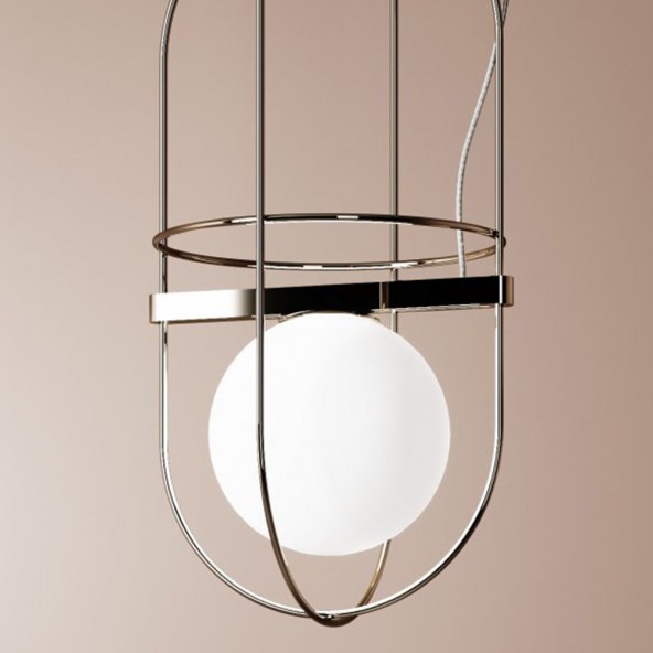 Светильник Setareh от фабрики Fontana Arte состоит из круглого плафона, изготовленного из выдуваемого вручную белого сатинового стекла, который словно при помощи магии прикреплен к тонкой металлической арматуре (черного или золотого цвета). Игра сферических масс и скруглённых траекторий создаёт сбалансированный образ гравитационной динамики. Свет от стеклянной сферы рассеивается в окружающее пространство, подсвечивая и подчёркивая структуру светильника. В коллекцию Setareh входят подвесные и настольные светильники. Более подробную информацию и возможные расцветки можно уточнить у менеджера.