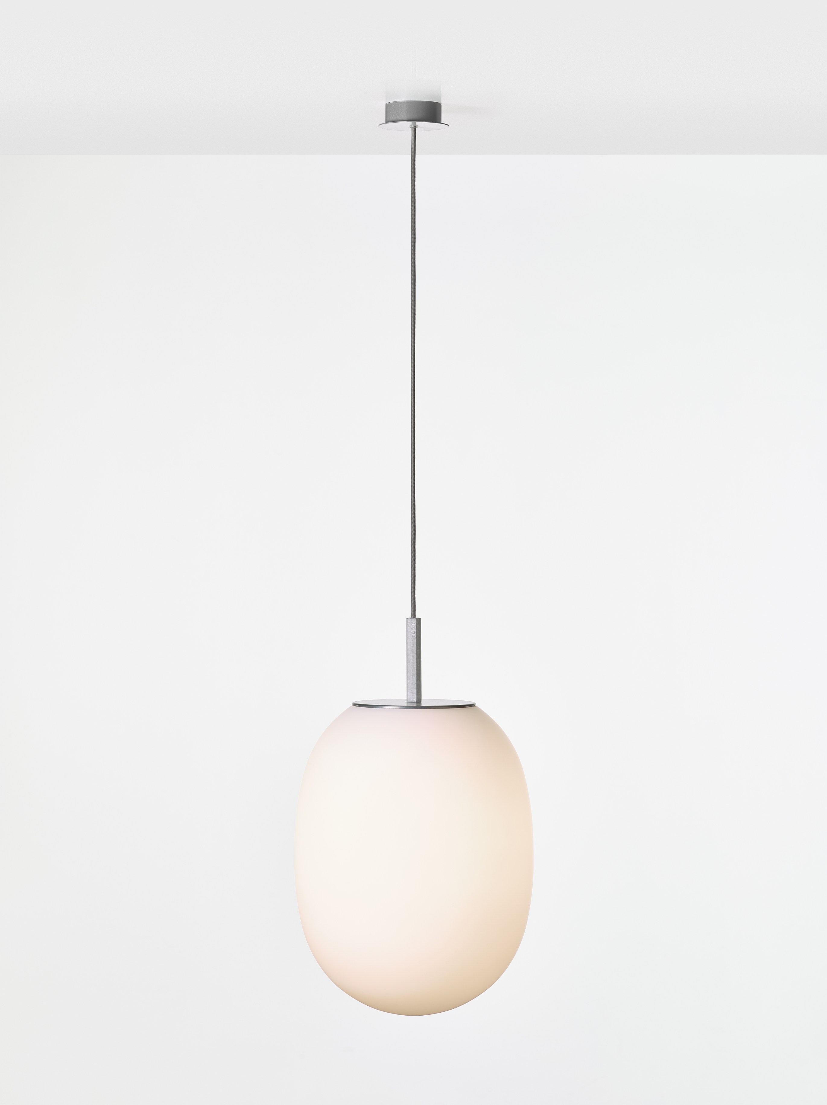 Основу конструкции составляет стеклянный плафон, мягко рассеивающий свет. Его поддерживает металлический корпус с разъёмом Brokis, обеспечивающим надёжный монтаж. Светильник оснащён цоколем E27, что позволяет использовать разные источники света. В комплект также входят металлический колпачок и шнур питания с разъёмом Brokis.