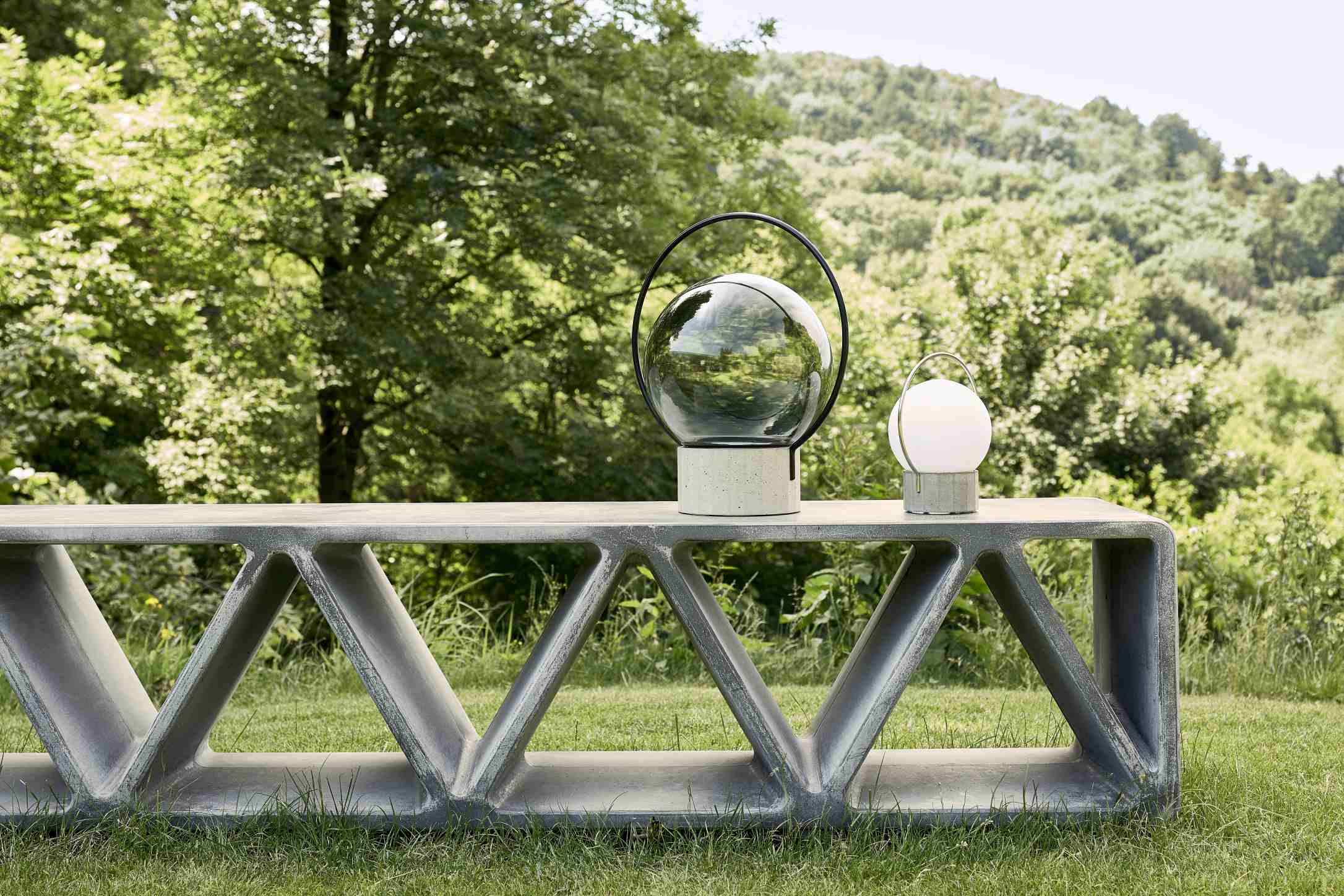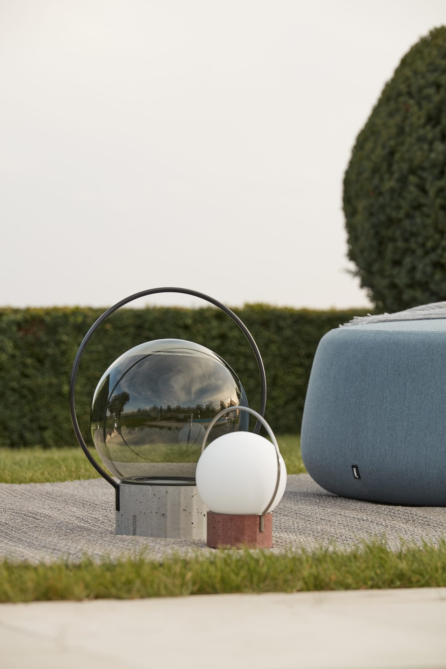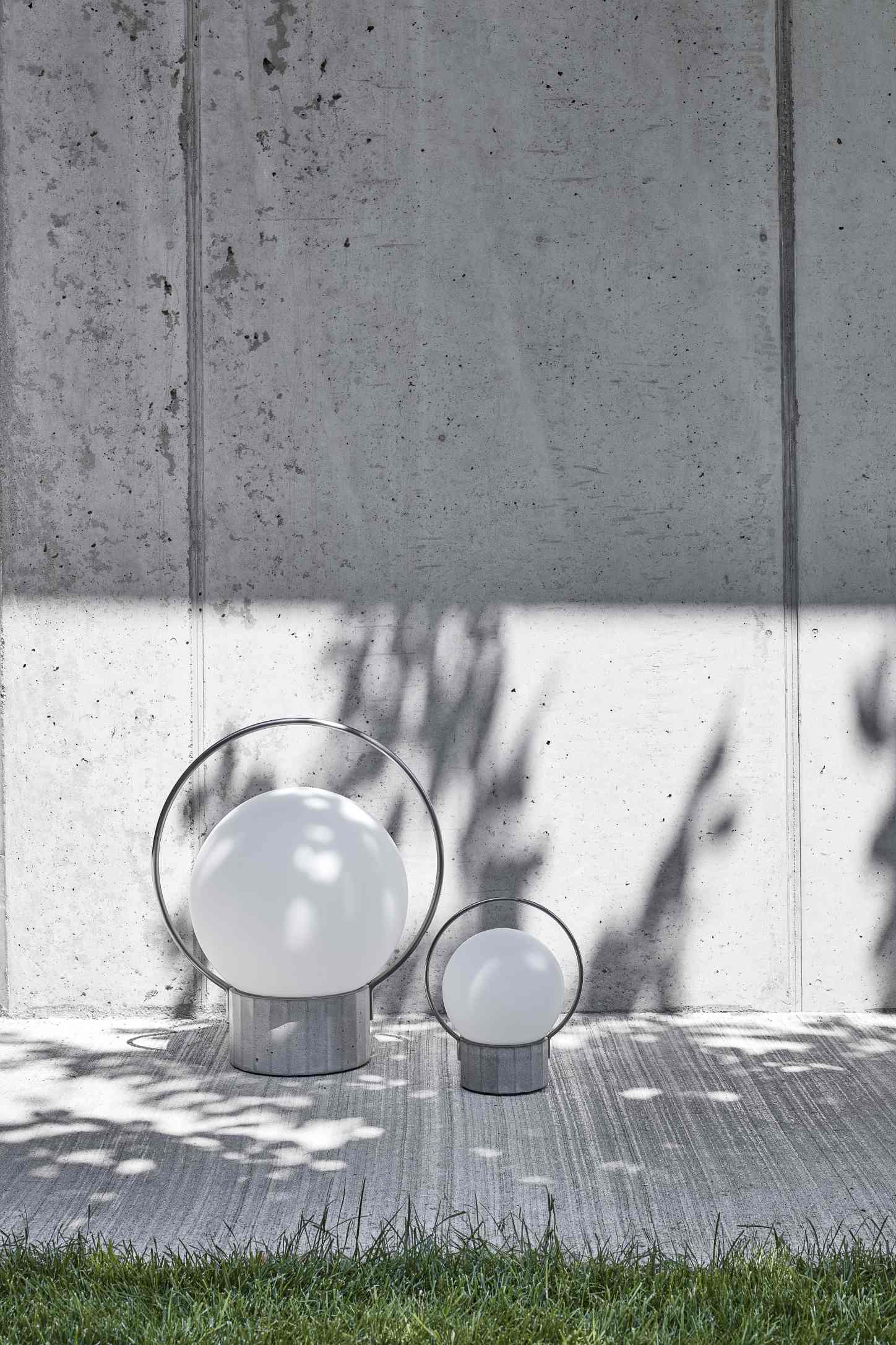 Sfera Portable — портативный уличный светильник от BROKIS, выпущенный в двух размерах. Его дизайн продолжает стилистику линейки Sfera: изящная сфера из выдувного стекла — матовая или глянцевая — помещена в литое бетонное основание с характерной многоугольной отделкой. Стальное кольцо вокруг сферы выполняет двойную роль: удерживает стекло и служит удобной ручкой для переноски.