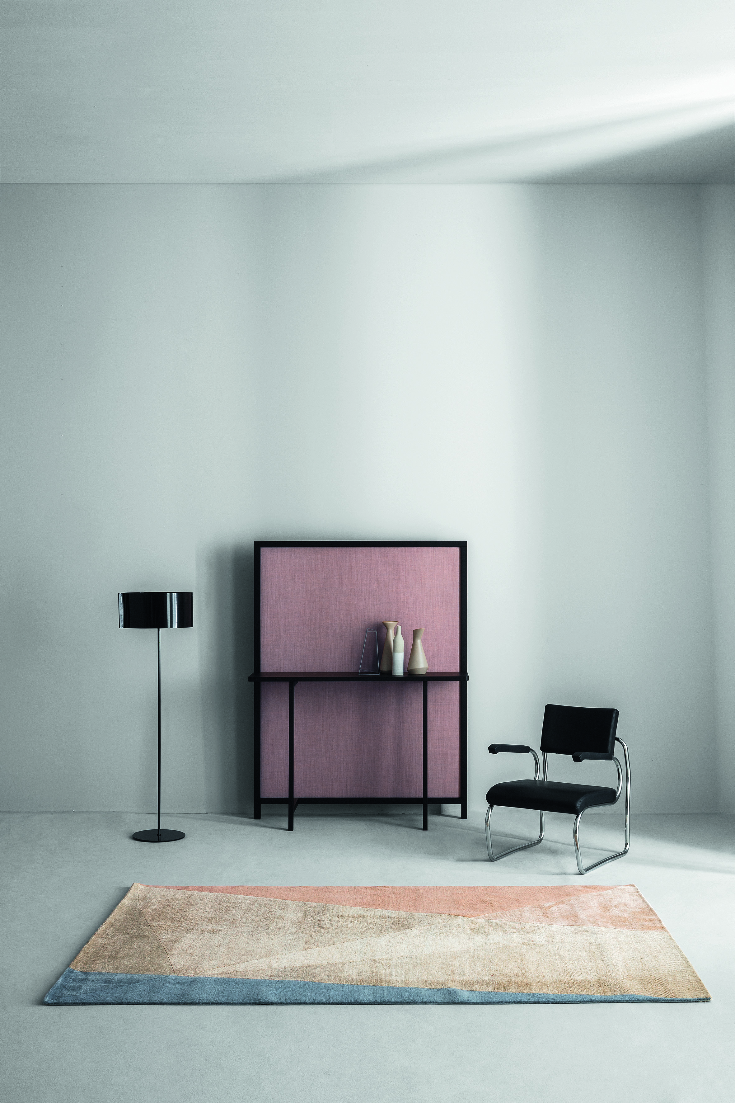 Стол-консоль Shoji, созданный дизайнерами из LucidiPevere Studio для компании Zanotta, дополнительно оборудован ширмой, поэтому он не только разграничивает пространство, но и выполняет функции мини-столика. Каркас столика выполнен из массива дуба и доступен в двух вариантах тонирования: черный или натуральный дуб. Панель ширмы покрыта текстилем.
