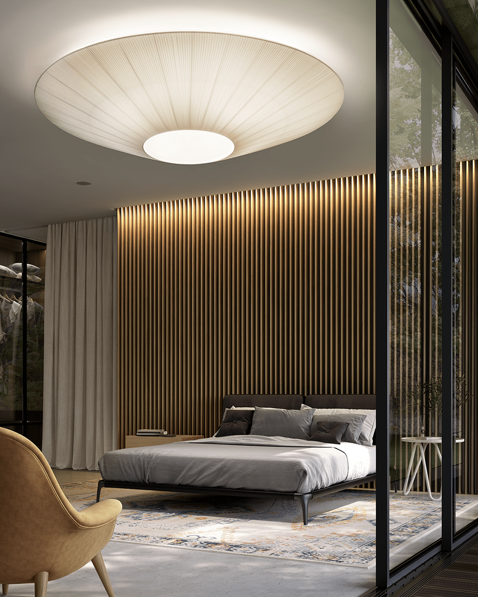 Свет от SIAM струится мягким каскадом. Он создаёт тёплую и уютную атмосферу в помещении. Рассеянное свечение лишенное резких бликов, наполняет пространство приглушённым сиянием, идеальным для отдыха.